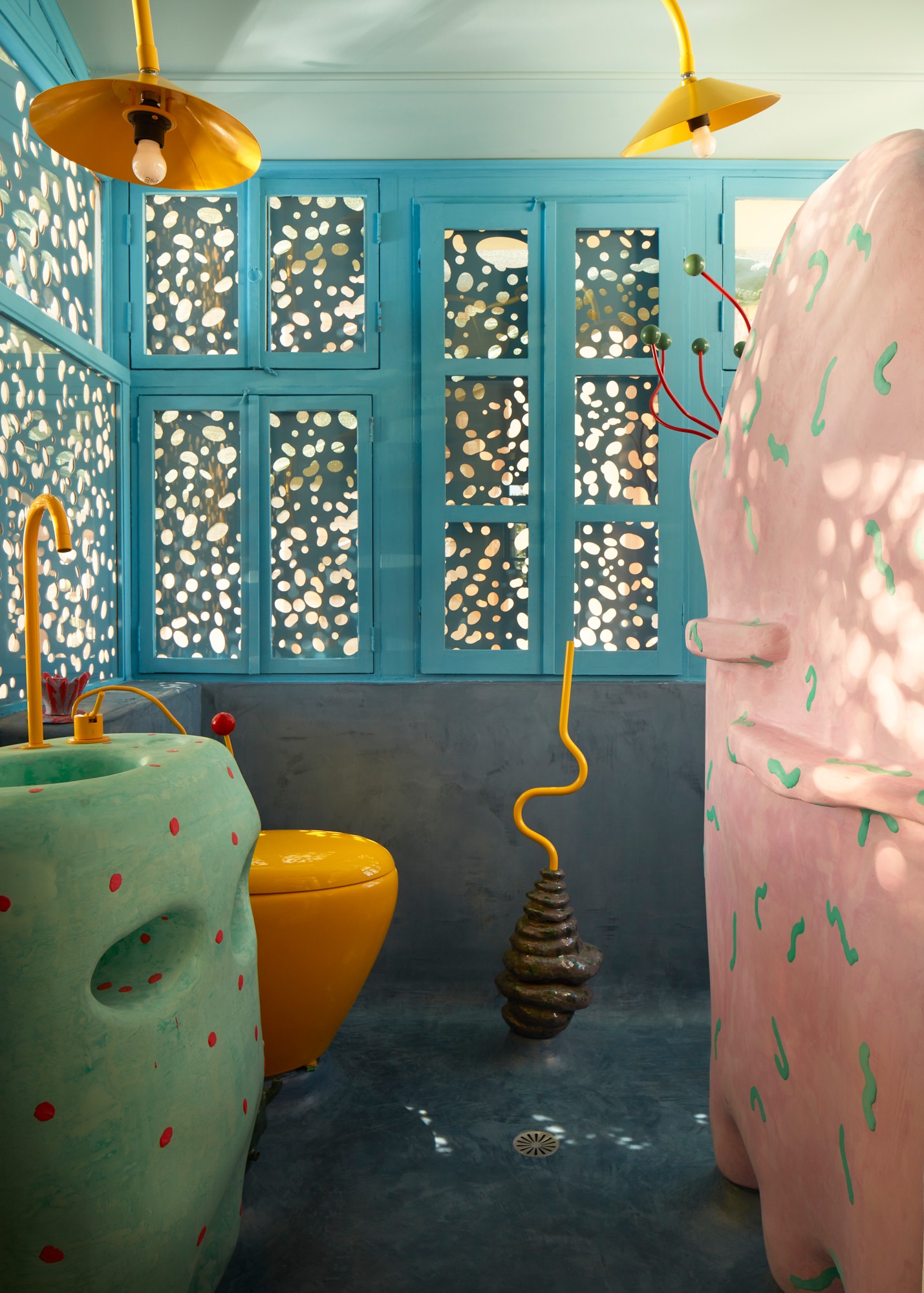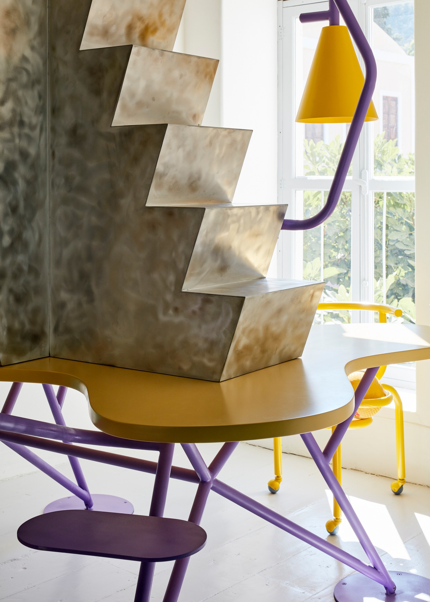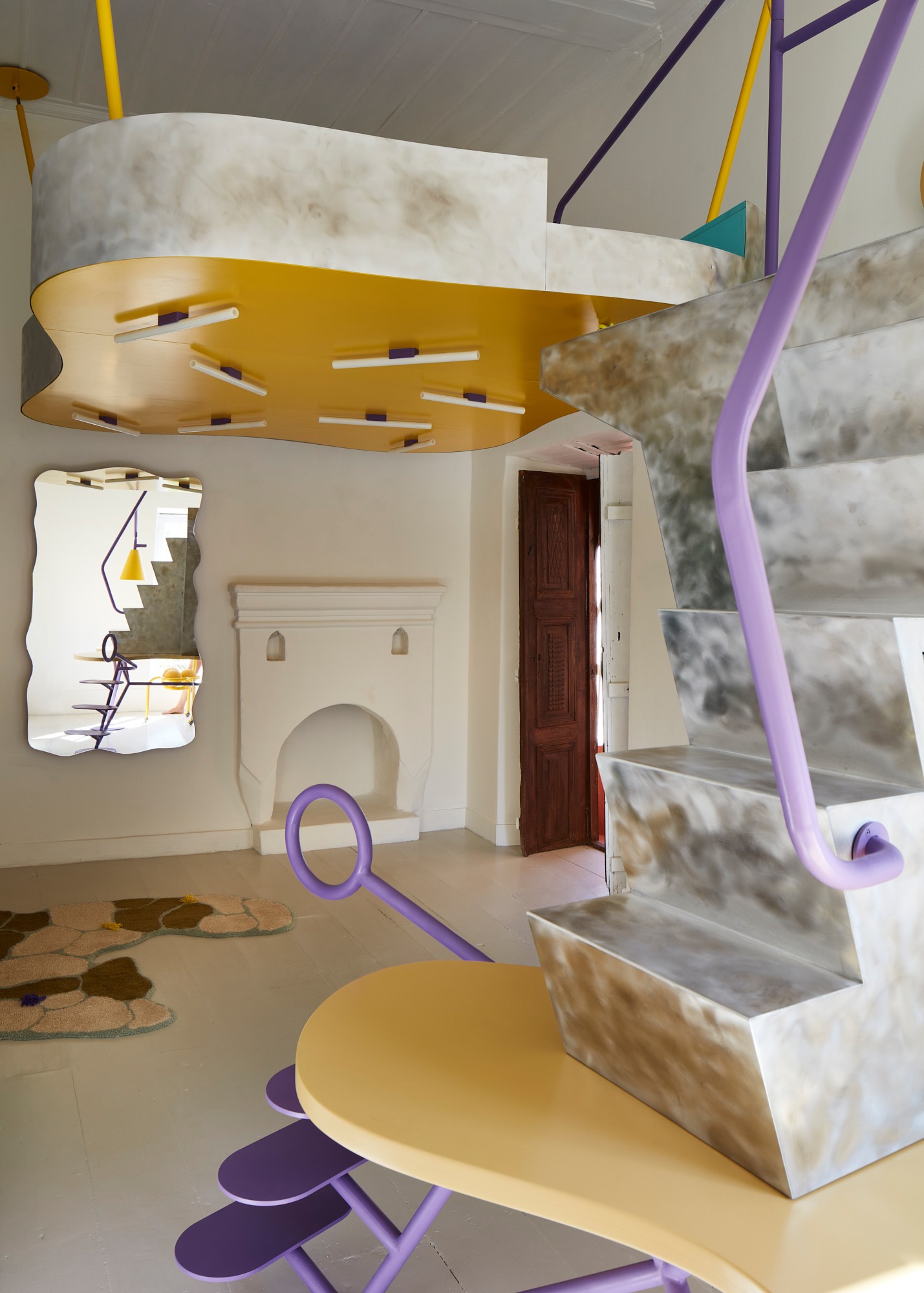 Die Möbel führen einen direkt zur Kernfrage der künstlerischen Produktion: Bin ich auf dieser winzigen Insel, um Urlaub zu machen? Gibt es Arbeit, die erledigt werden muss? Oder verwandle ich mich in eine Mischung aus Urlauber und kreativem Arbeiter? Über dieses süße Dilemma nachdenkend, bahne ich mir einen Weg über den Schreibtisch, um zurück in den Kronleuchter zu klettern, der zum Bett wird, sobald ich das Licht ausschalte.