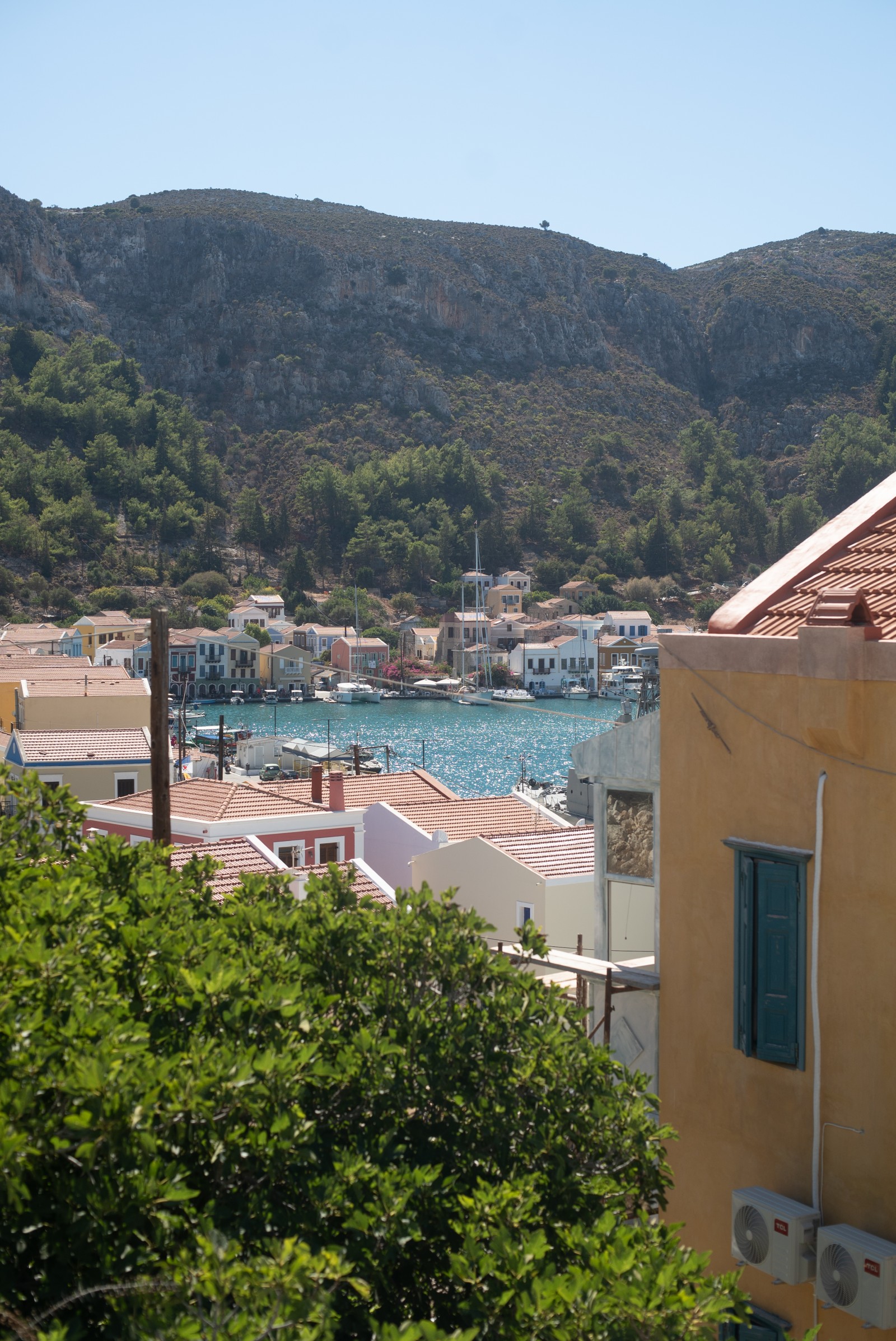Um nach Kastellorizo zu gelangen, fliegen wir nach Rhodos und nehmen am nächsten Morgen eine Fähre, die am Abend endlich die kleine Insel anläuft. Obwohl Teil der Europäischen Union, scheint es nicht wesentlich anstrengender zu sein, zum Mond zu fliegen, als in Kastellorizo von Bord zu gehen. Auf der Insel erwarten einen unzählige Ruinen und kaum Infrastruktur. Die Militärbasis verkauft ausgewählte Baumaterialien und Getränke. Wer morgens Elektriker ist, kann schon abends Fischer oder Polizist sein. Benötigt man mehr, als der kleine Einkaufsladen zu bieten hat, lohnt es sich am Heck der Segelyachten zu klopfen, die im Hafen liegen. Alles hier scheint mehrere Funktionen zu haben.