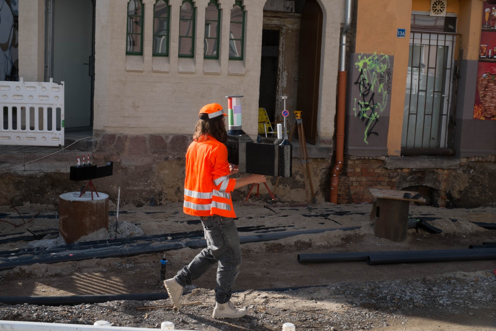 Die Stadt ist übersäht mit grauen Kästen, Litfaßsäulen, Rohren, Antennen und vergitterten Öffnungen, die unter dem Deckmantel urbaner Infrastrukturen wie Pilze auf einem undurchsichtigen Untergrund wachsen.
