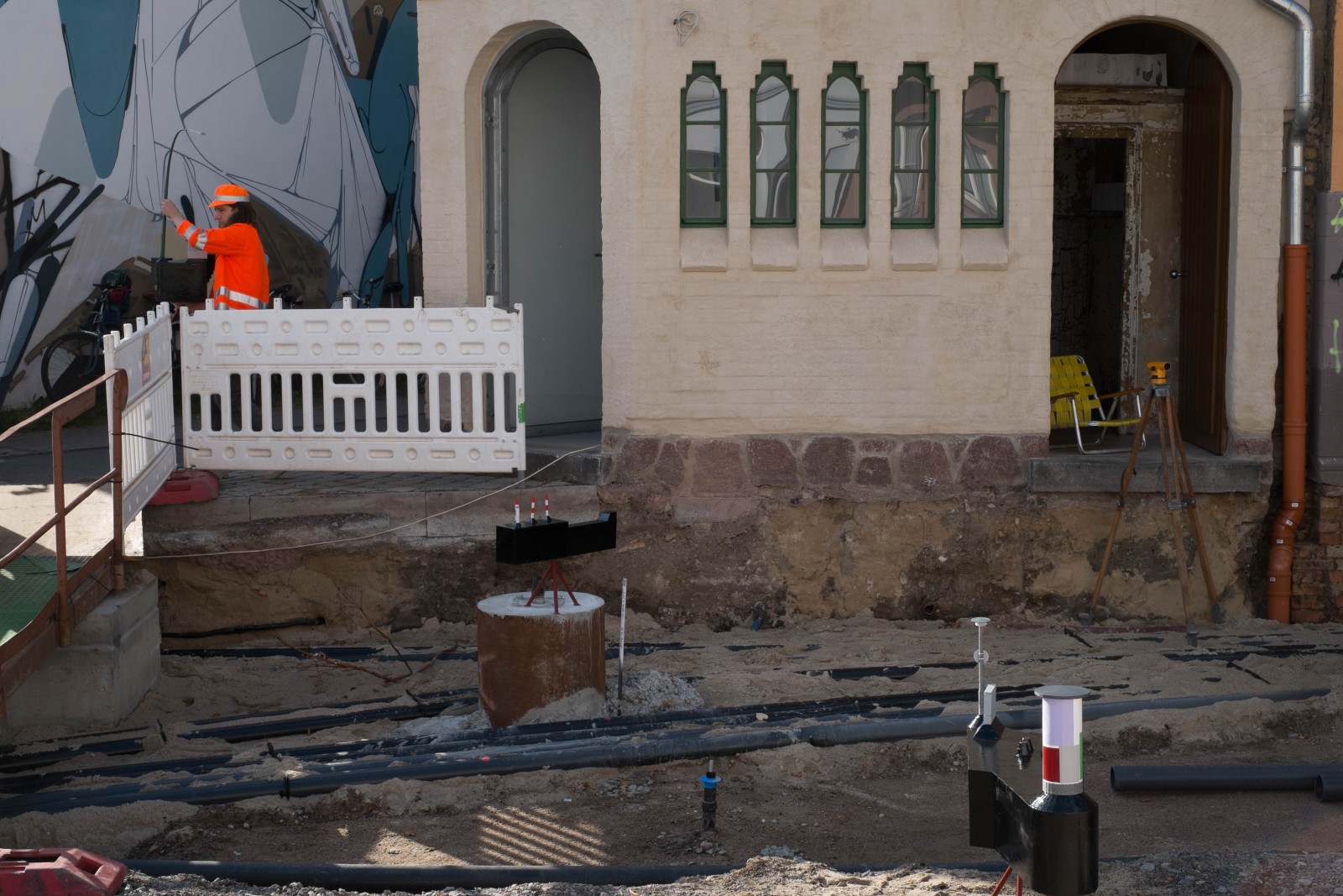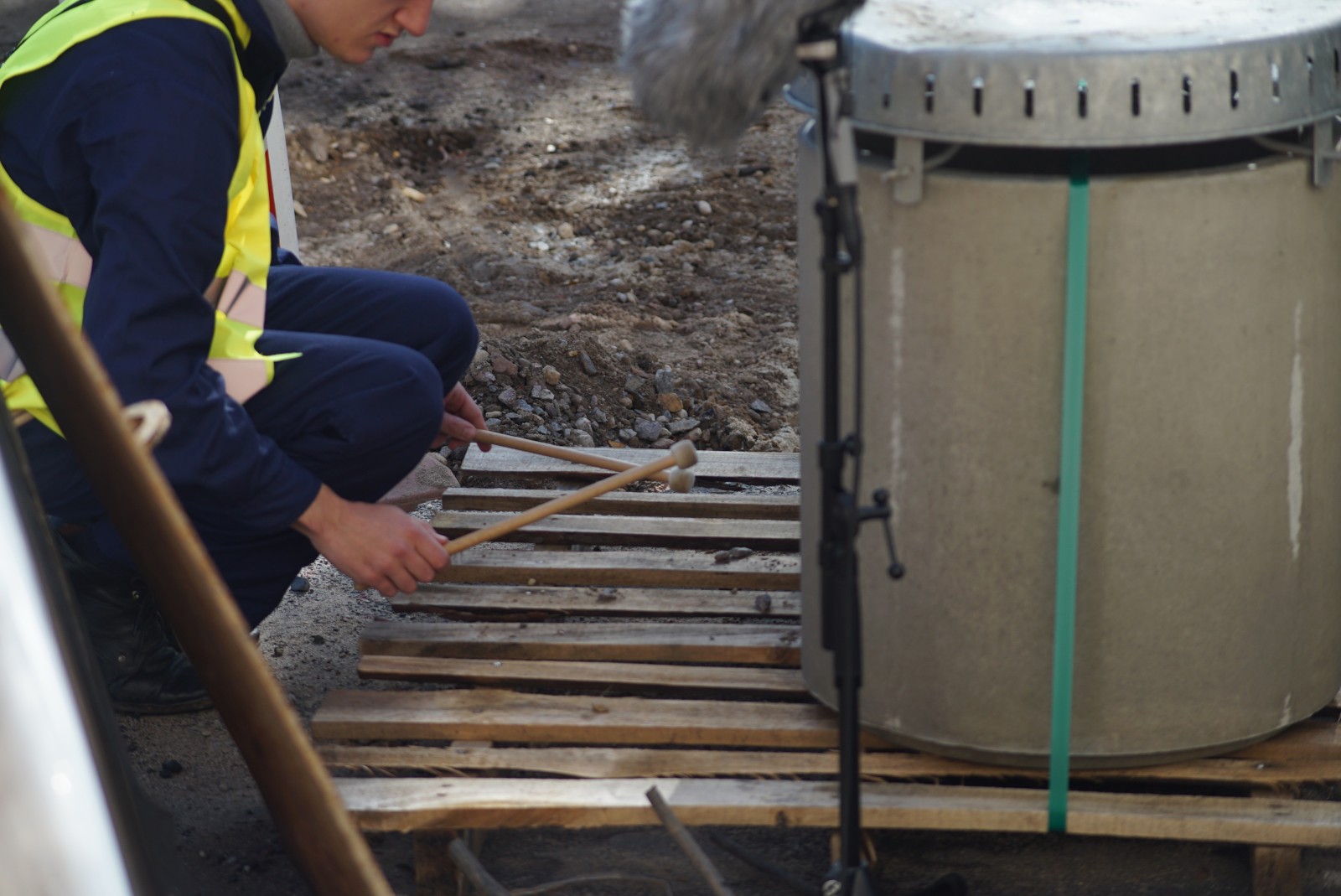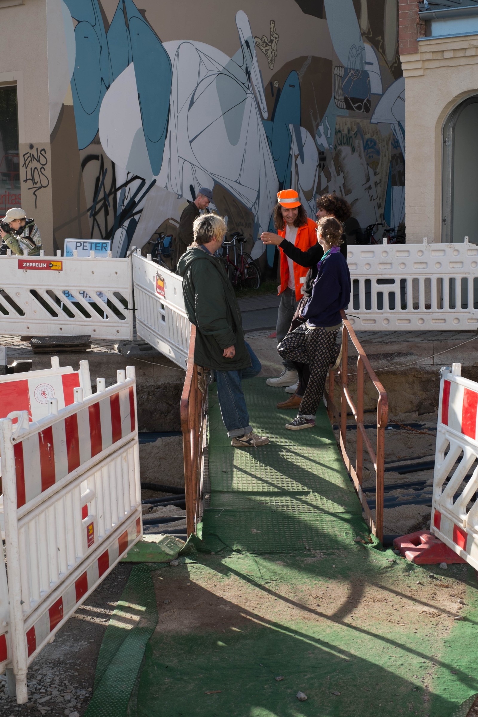 Während der Ausstellungszeit wird das Gebäude von Spezial-isten mit schwerem Gerät ausgegraben, um den Gerüchten auf den Grund zu gehen. Für die Eröffnungsfeier führen die Klangexperten von Nadelör Klangexperimente unter dem Pflaster durch.
