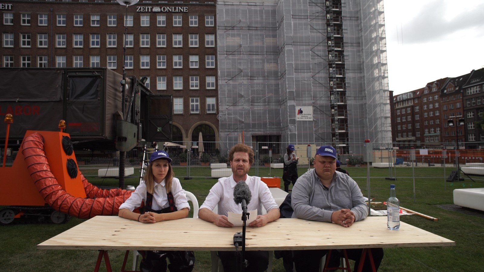Im Herzen von Hamburg und Berlin wird mit minimalinvasiven Techniken nach den Ruinen eines Nationaldenkmals gegraben. Wie sich zeigt, stammen die Funde des zweiten Walhalla gar nicht aus der Vergangenheit, vielmehr scheinen sie die Folge aktueller politischer Entwicklungen zu sein. Auf welche Zukünfte steuern wir mit großen Schritten zu und wie lassen sie sich vorab ruinieren? Die Entdeckungen werden im Dokumentationszentrum Zukunft der Öffentlichkeit präsentiert.