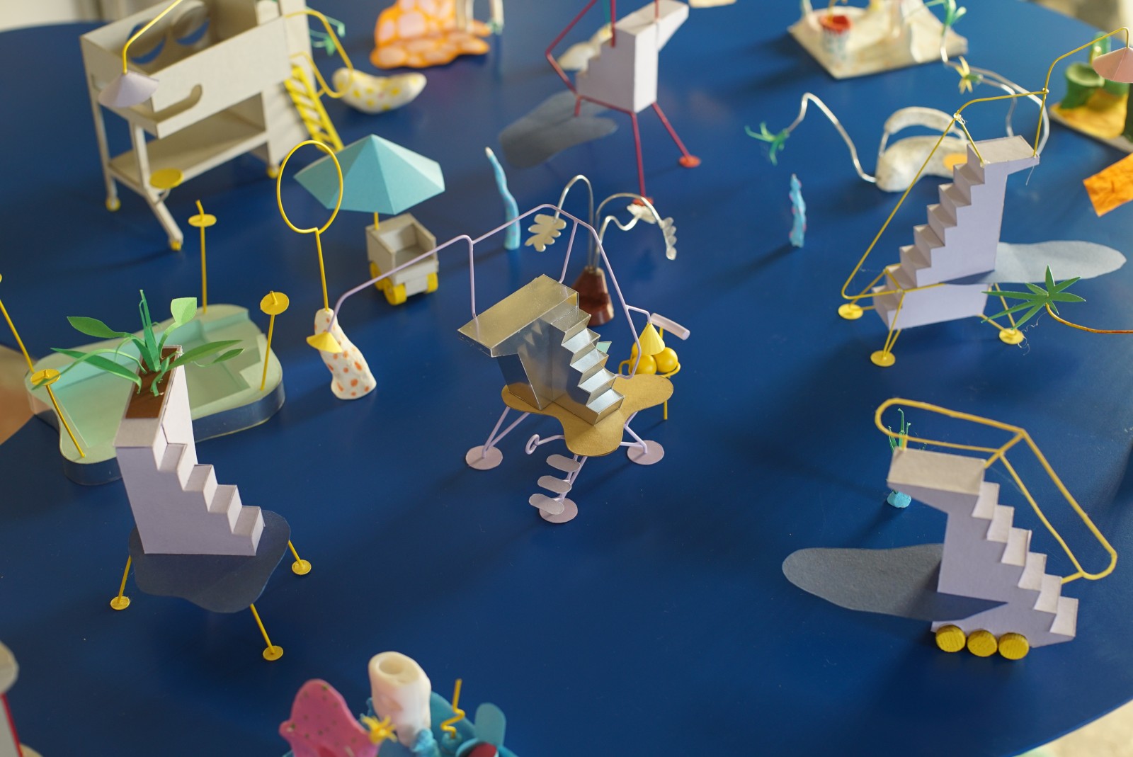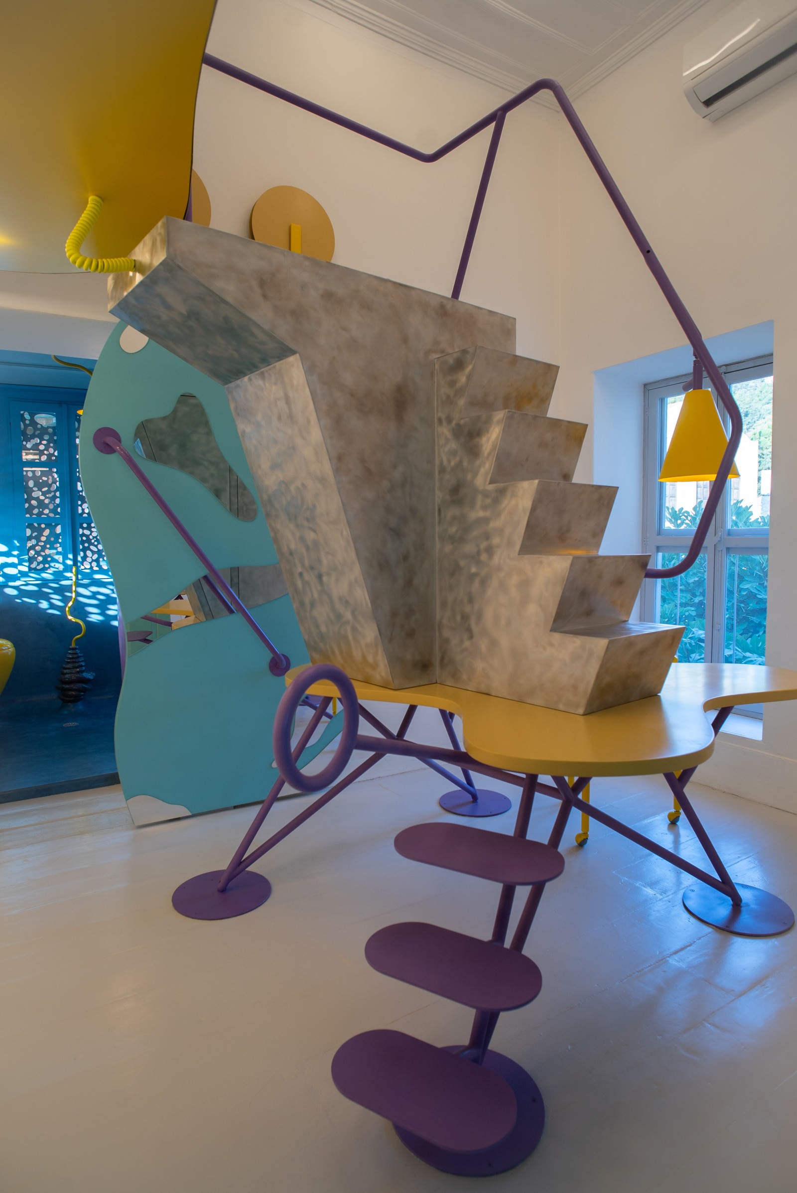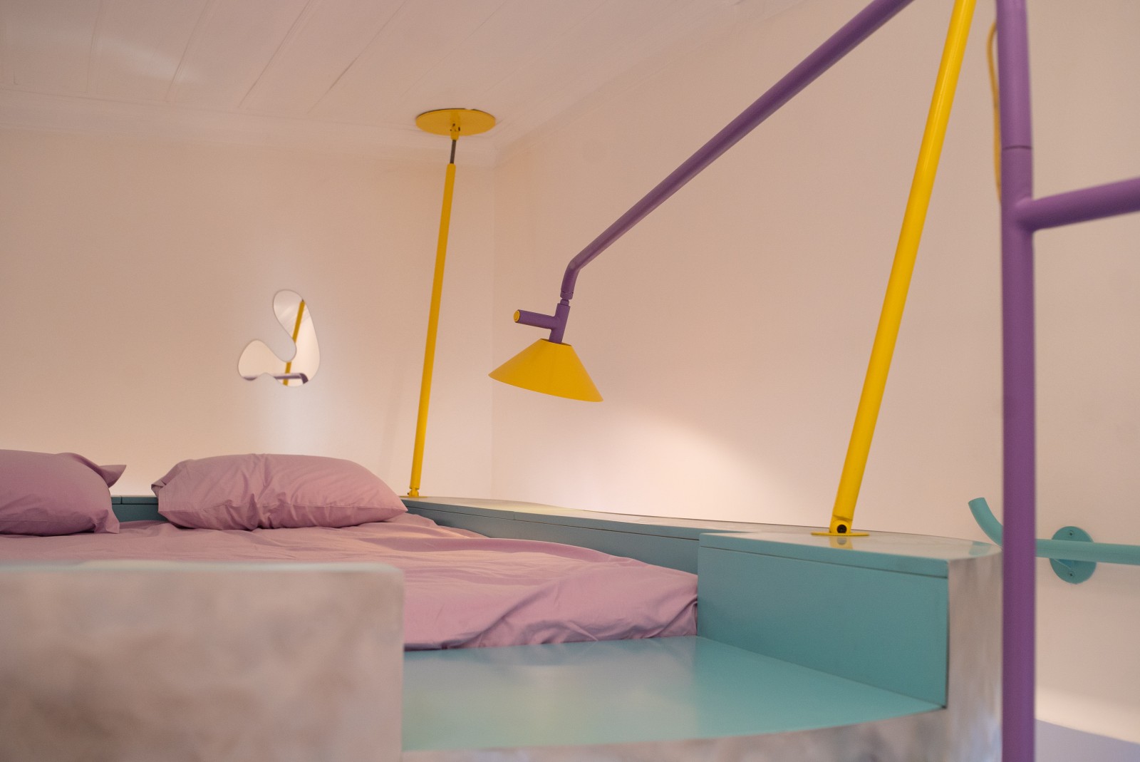 Die Möbel führen einen direkt zur Kernfrage der künstlerischen Produktion: Bin ich auf dieser winzigen Insel, um Urlaub zu machen? Gibt es Arbeit, die erledigt werden muss? Oder verwandle ich mich in eine Mischung aus Urlauber und kreativem Arbeiter? Über dieses süße Dilemma nachdenkend, bahne ich mir einen Weg über den Schreibtisch, um zurück in den Kronleuchter zu klettern, der zum Bett wird, sobald ich das Licht ausschalte.