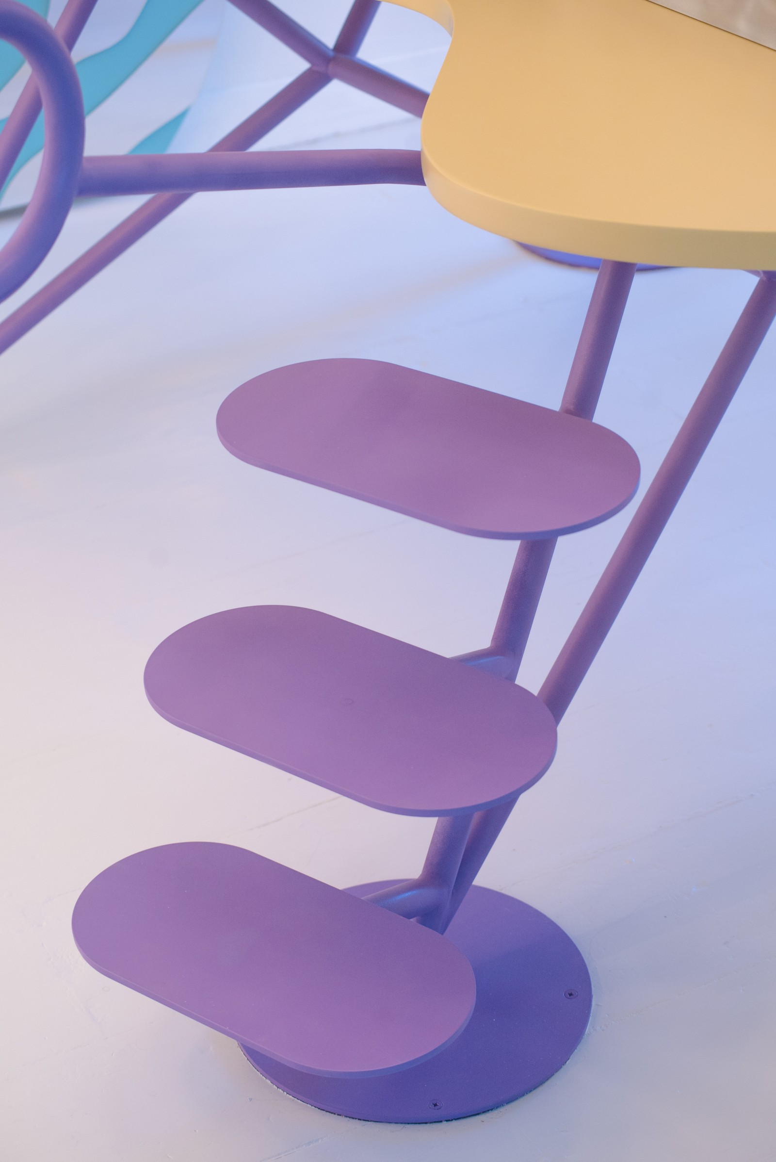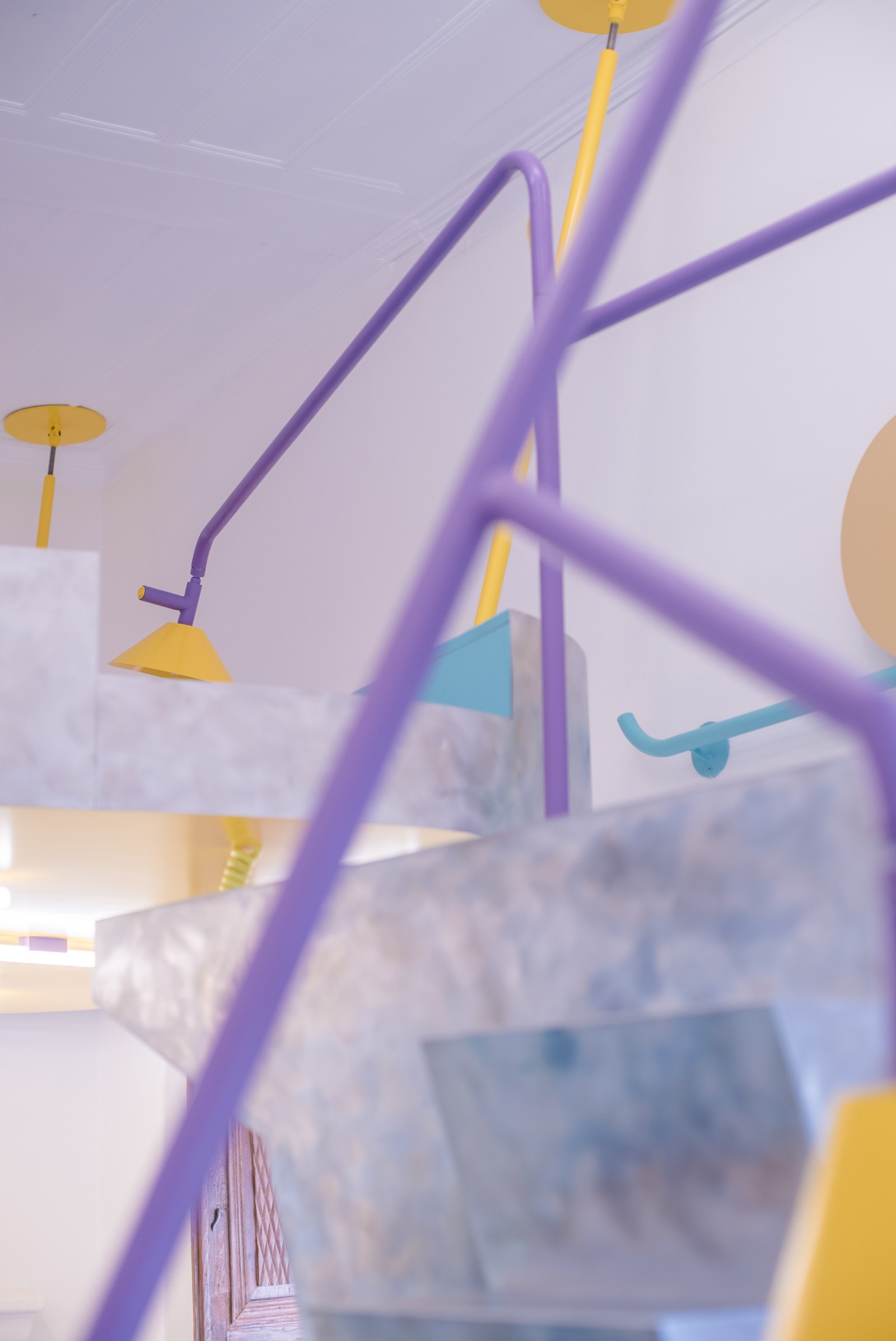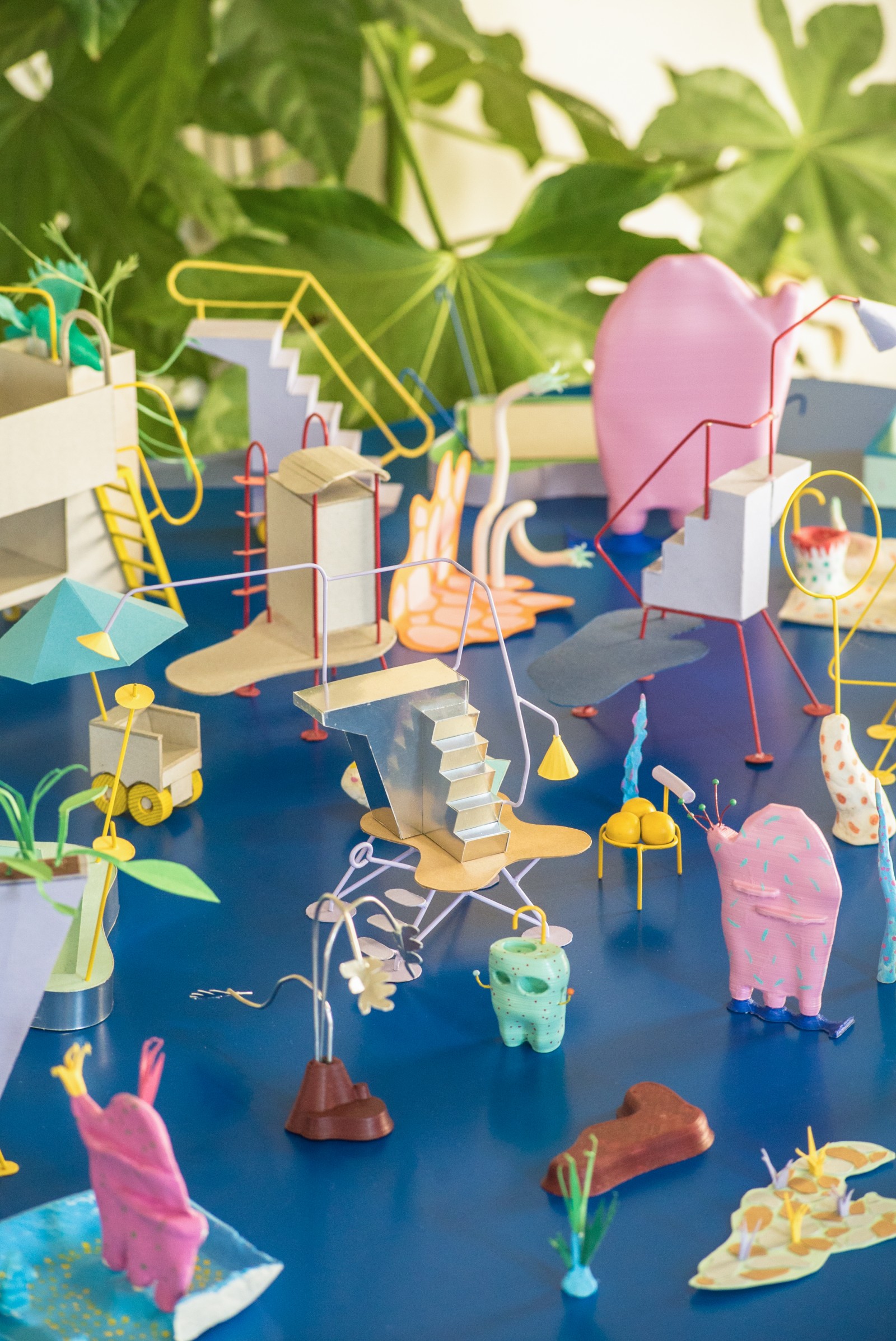 Die Möbel führen einen direkt zur Kernfrage der künstlerischen Produktion: Bin ich auf dieser winzigen Insel, um Urlaub zu machen? Gibt es Arbeit, die erledigt werden muss? Oder verwandle ich mich in eine Mischung aus Urlauber und kreativem Arbeiter? Über dieses süße Dilemma nachdenkend, bahne ich mir einen Weg über den Schreibtisch, um zurück in den Kronleuchter zu klettern, der zum Bett wird, sobald ich das Licht ausschalte.