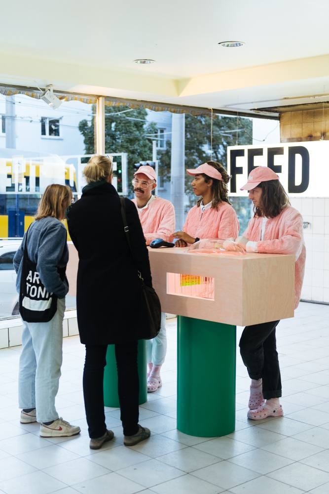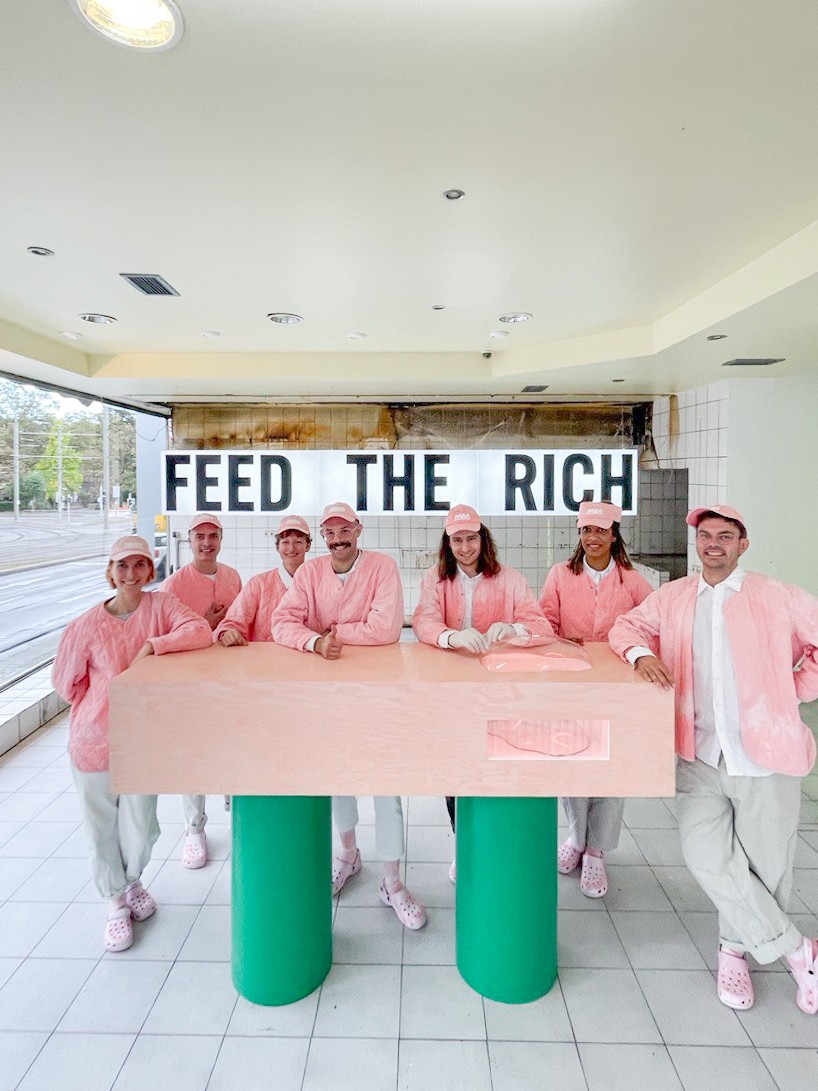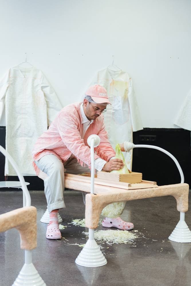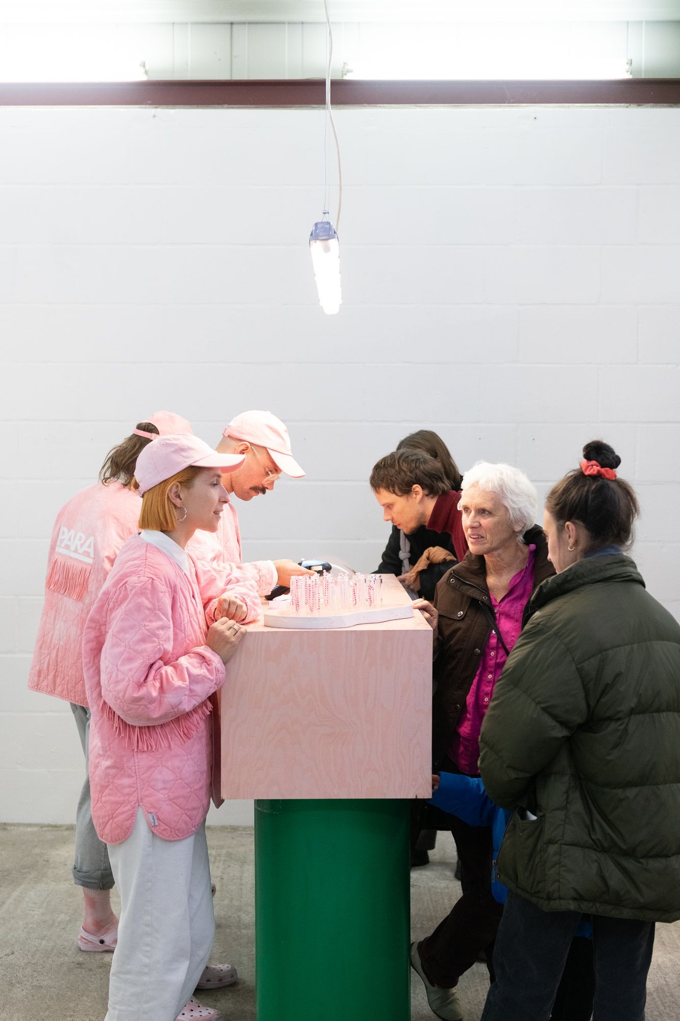 Das gärende Kraut wird zum Trägermedium für gesellschaftliches Unbehagen und kann im angeschlossenen Pop-Up-Shop kostenlos mitgenommen werden. Jetzt geht es ans Austeilen: Füttert eure Friends und Feinde, eure Chefs und Vermieter:innen und vielleicht auch Euch selbst. Verbreitet das Wut-Biom unter den Profiteur:innen des Schweinesystems. Das Sauer-Kraut von PARA macht nicht nur lecker; es verspricht auch bei regelmäßiger Einnahme gesundheitlich unbedenkliche, gesellschaftlich produktive Unruhe- und Wutzustände. Also: Verspeisen wir uns selbst. Füttern wir die Reichen!