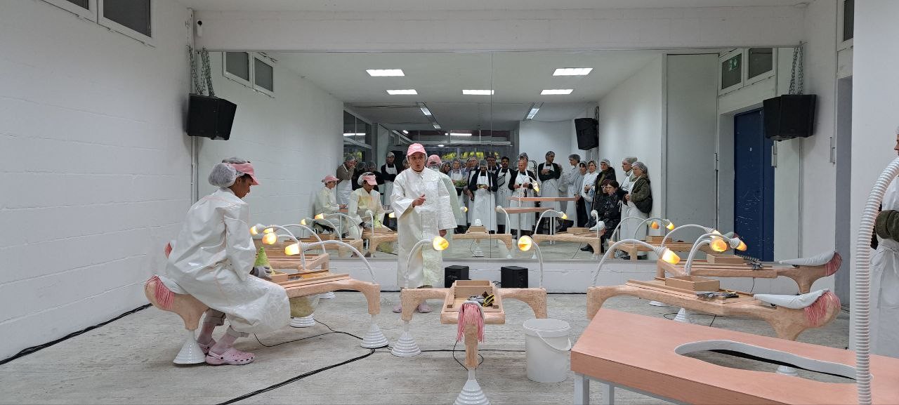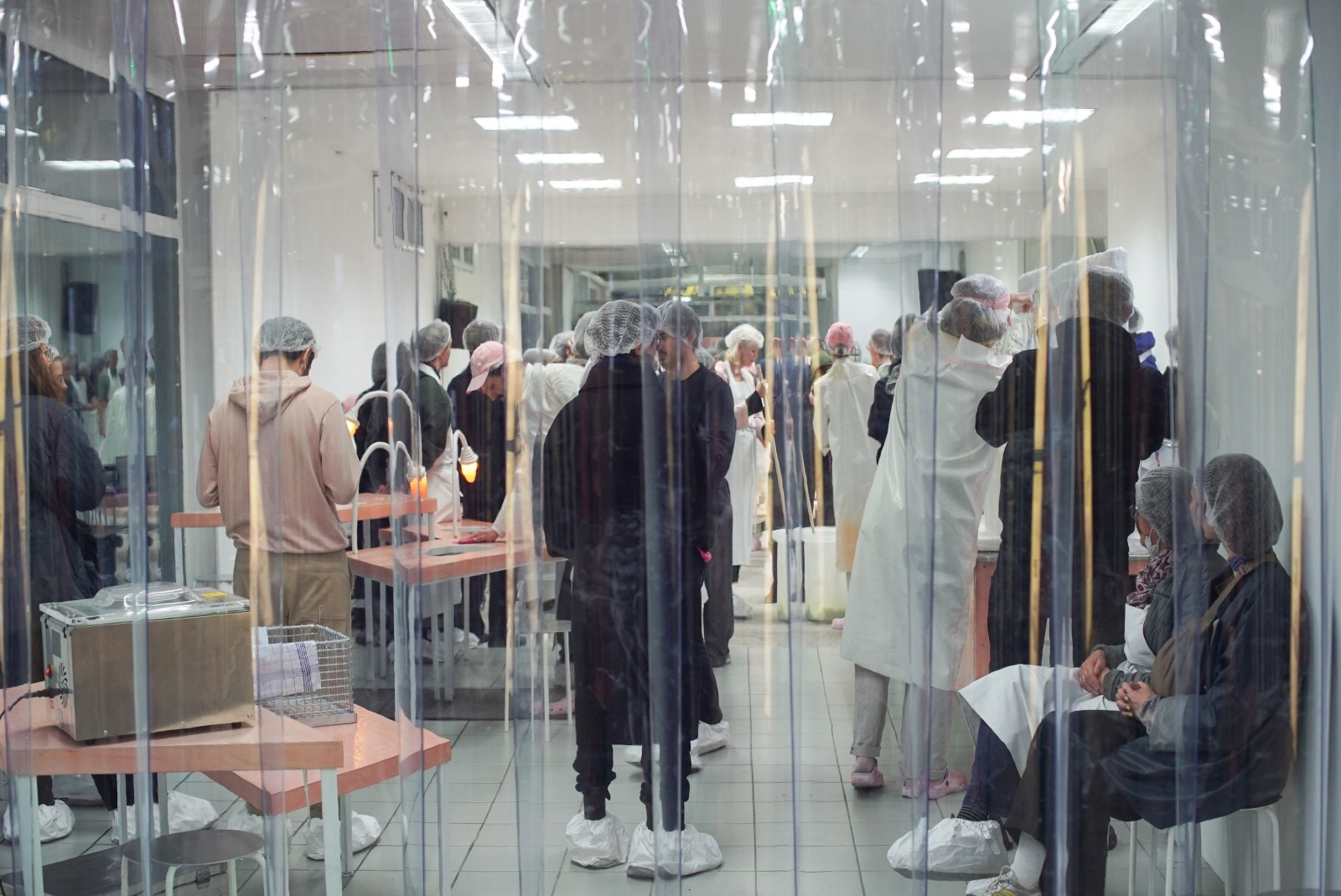 Das Künstler:innenkollektiv PARA gründet in der Stuttgarter Innenstadt einen temporären Pop-Up-Store, der mit einer Sauerkraut-Produktionsstätte die Zuschauenden zu Kollaborateur:innen konkreter Umverteilung macht. PARA lädt die Stadtgesellschaft ein, gemeinschaftlich vor der Entsorgung bewahrten Kohl und anderes Gemüse einzulegen. Die Bakterien, die unsere grummelnden Mägen bewohnen und unser Verhalten beeinflussen, gehen beim Kneten von der Hand auf das Kraut über. Zusammen mit einer Prise Salz setzen sie so den Prozess der Milchsäuregärung in Gang.