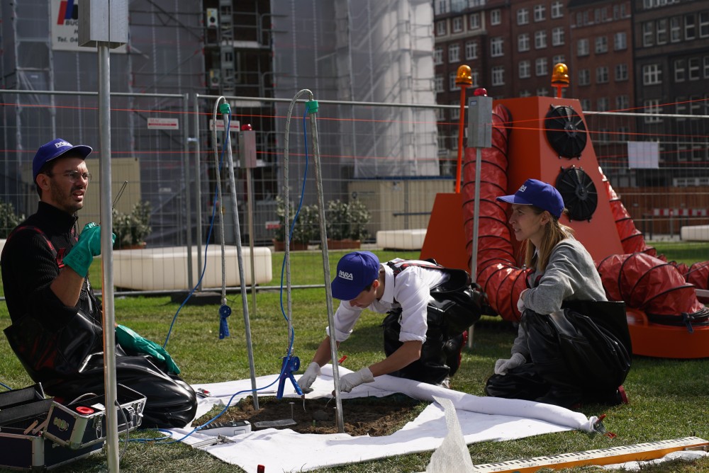 Im Herzen von Hamburg und Berlin wird mit minimalinvasiven Techniken nach den Ruinen eines Nationaldenkmals gegraben. Wie sich zeigt, stammen die Funde des zweiten Walhalla gar nicht aus der Vergangenheit, vielmehr scheinen sie die Folge aktueller politischer Entwicklungen zu sein. Auf welche Zukünfte steuern wir mit großen Schritten zu und wie lassen sie sich vorab ruinieren? Die Entdeckungen werden im Dokumentationszentrum Zukunft der Öffentlichkeit präsentiert.