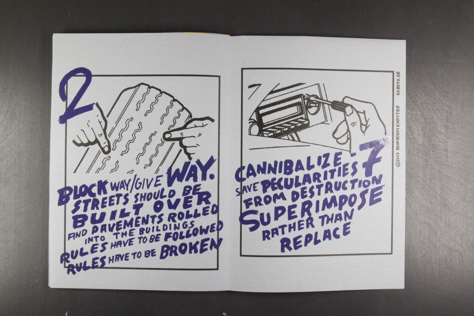 Über ein langes Haus und voranfühlende Striche aus dem fahrenden Wagen - das retroaktive Manifest vom Kottbusser Tor, dem großen Motor in den Mund gelegt. Das Heft gibt Zugang zur digitalen Karte und dem Film, mit dem sich «Kobuto» erkunden lässt ― Herausgeber: Peter Behrbohm ― Edition: 200 nummerierte Exemplare, hier erhältlich