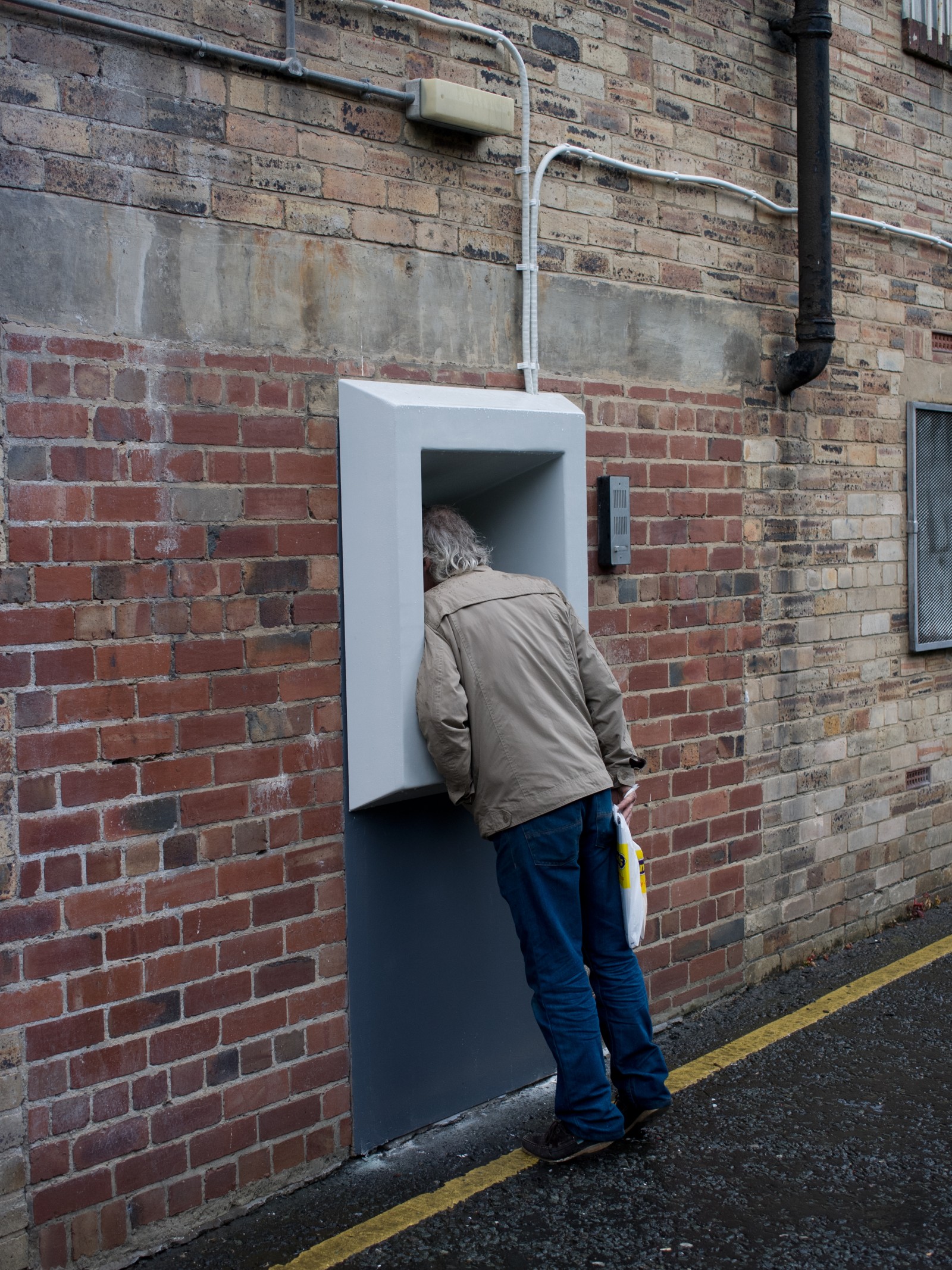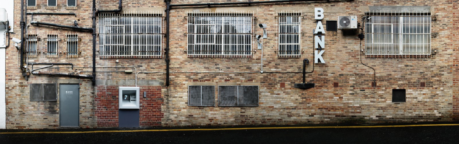 Another bank has opened on the outskirts of a medium-sized town, just off a small arterial road. The building is remarkably inconspicuous. The bright capital letters do their best to produce integrity. ‘Money is trust!’, that's what they want to say. And as if to reinforce this statement, a polished ATM and a group of surveillance cameras protrude from the wall beneath the letters. This looks like a bank. And obviously that's all this business is about.