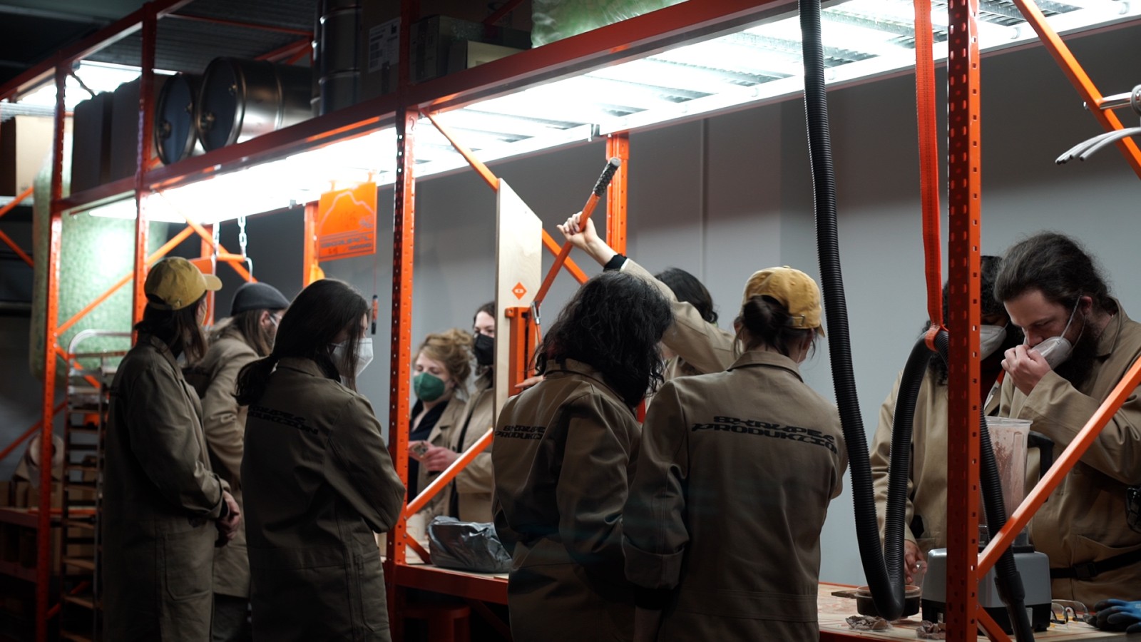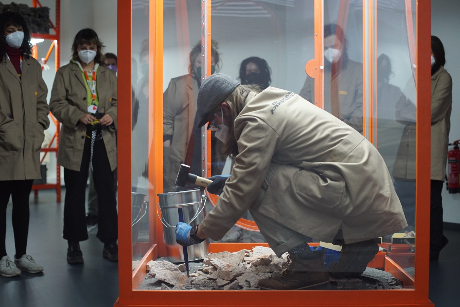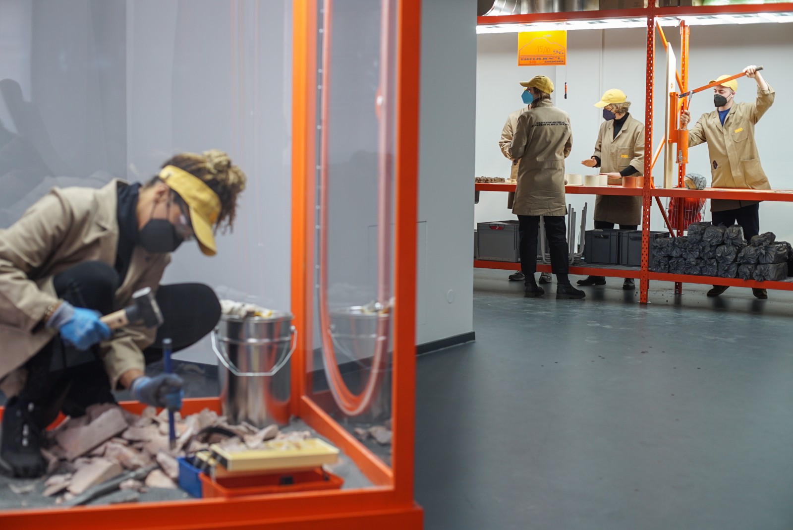 With a view to returning the summit stone, PARA, in its exhibition Berge Versetzen, invites the public to strip away the building fabric of the GRASSI Museum through performative acts and to produce replicas of the stone using the material obtained. These can be purchased at the exhibition and on this website. The proceeds of the sold replicas will help repurchase the actual summit stone from the antiquarian’s inventory at cost price. The ethnographic museum housing the looted objects of colonised societies will thus become the raw material for the restitution.