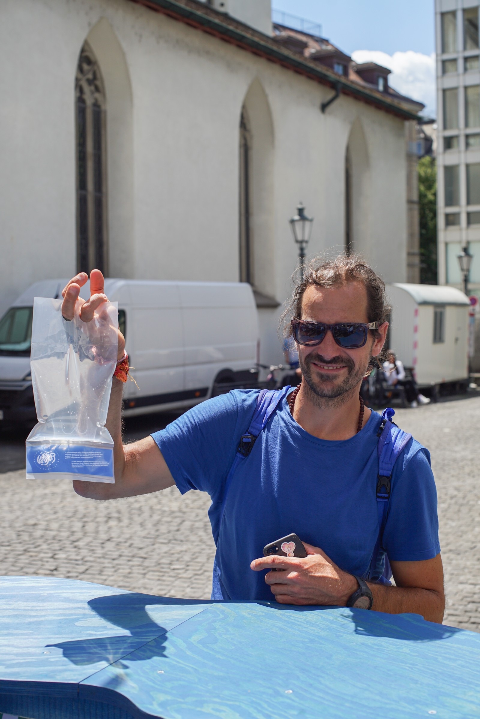 After a friendly conversation with the customer, the destination of the water and a date for use are entered together and sealed in the bag. Within hours and days, the water is on its way around the globe.