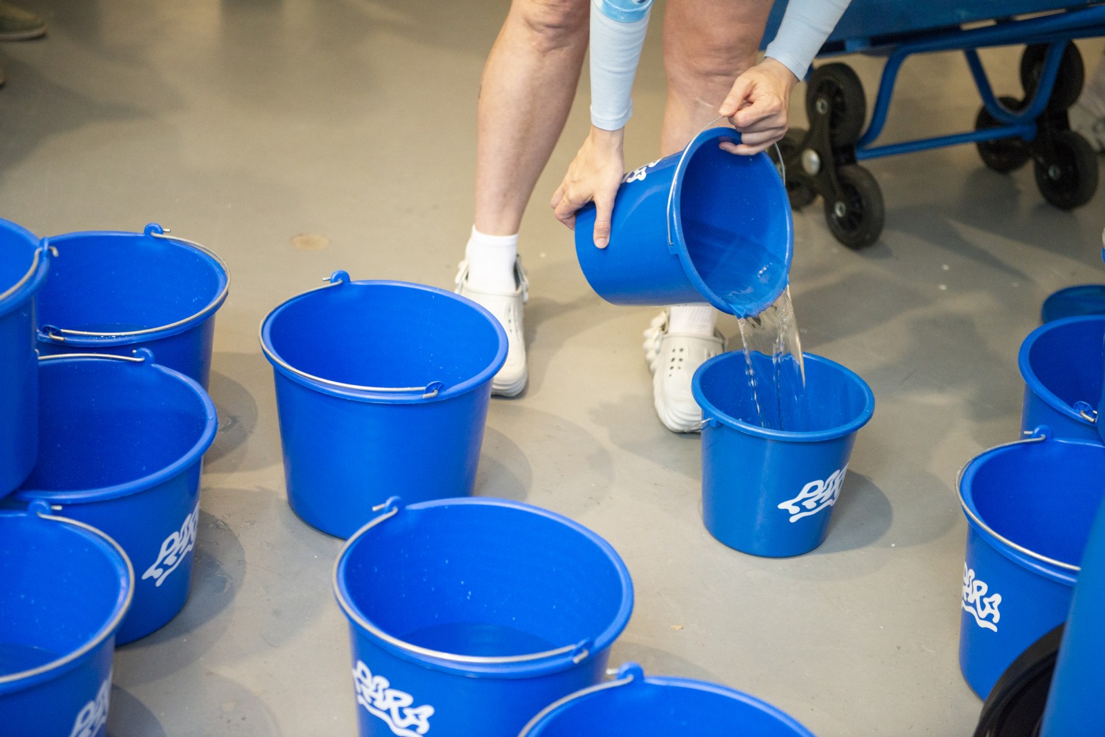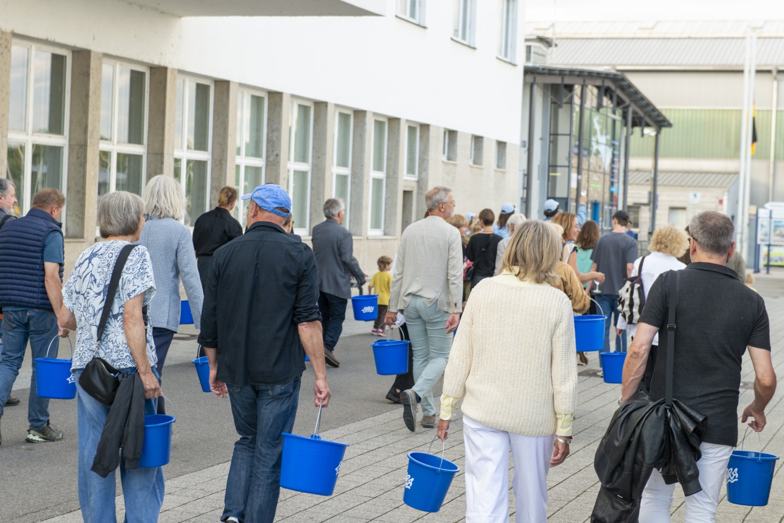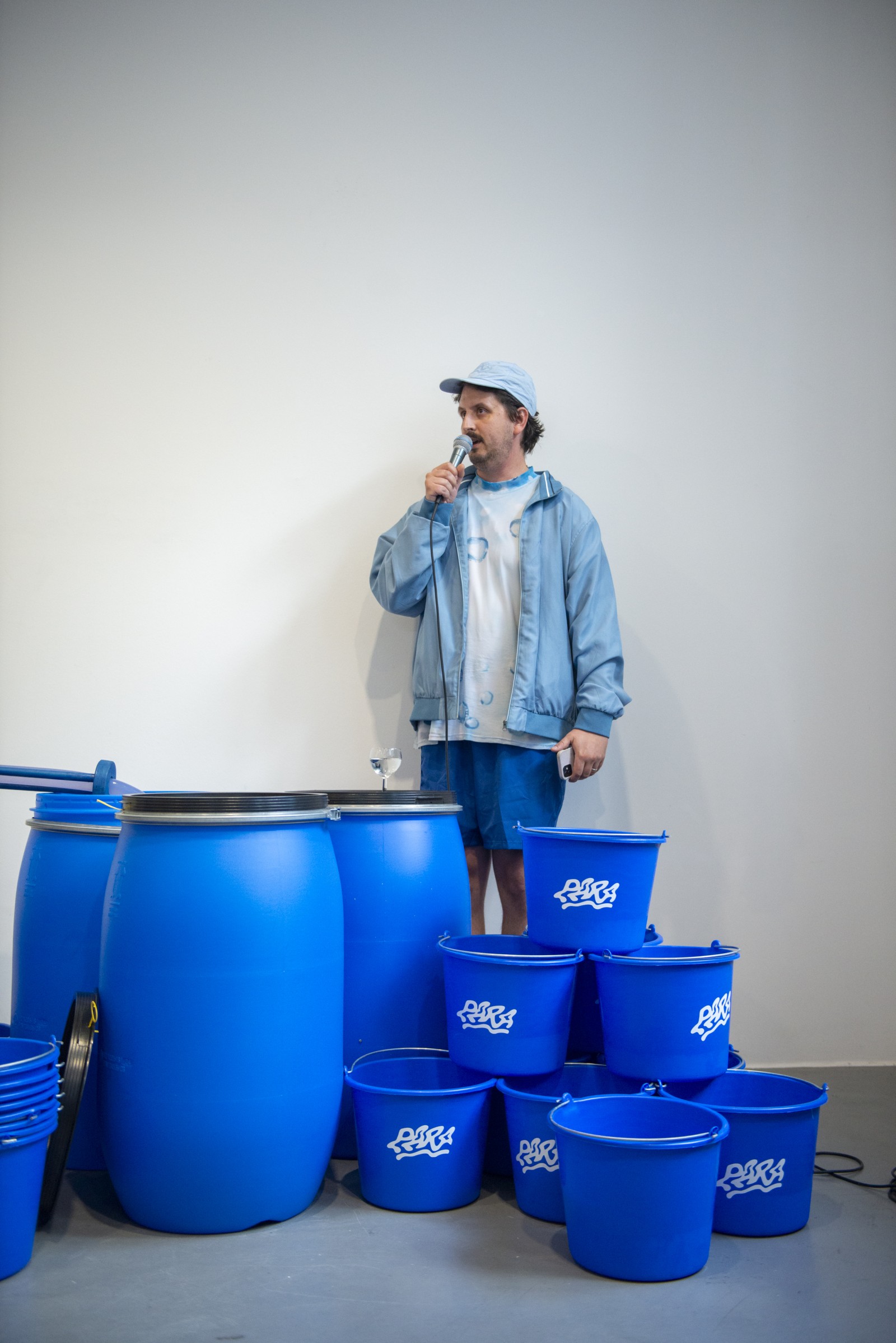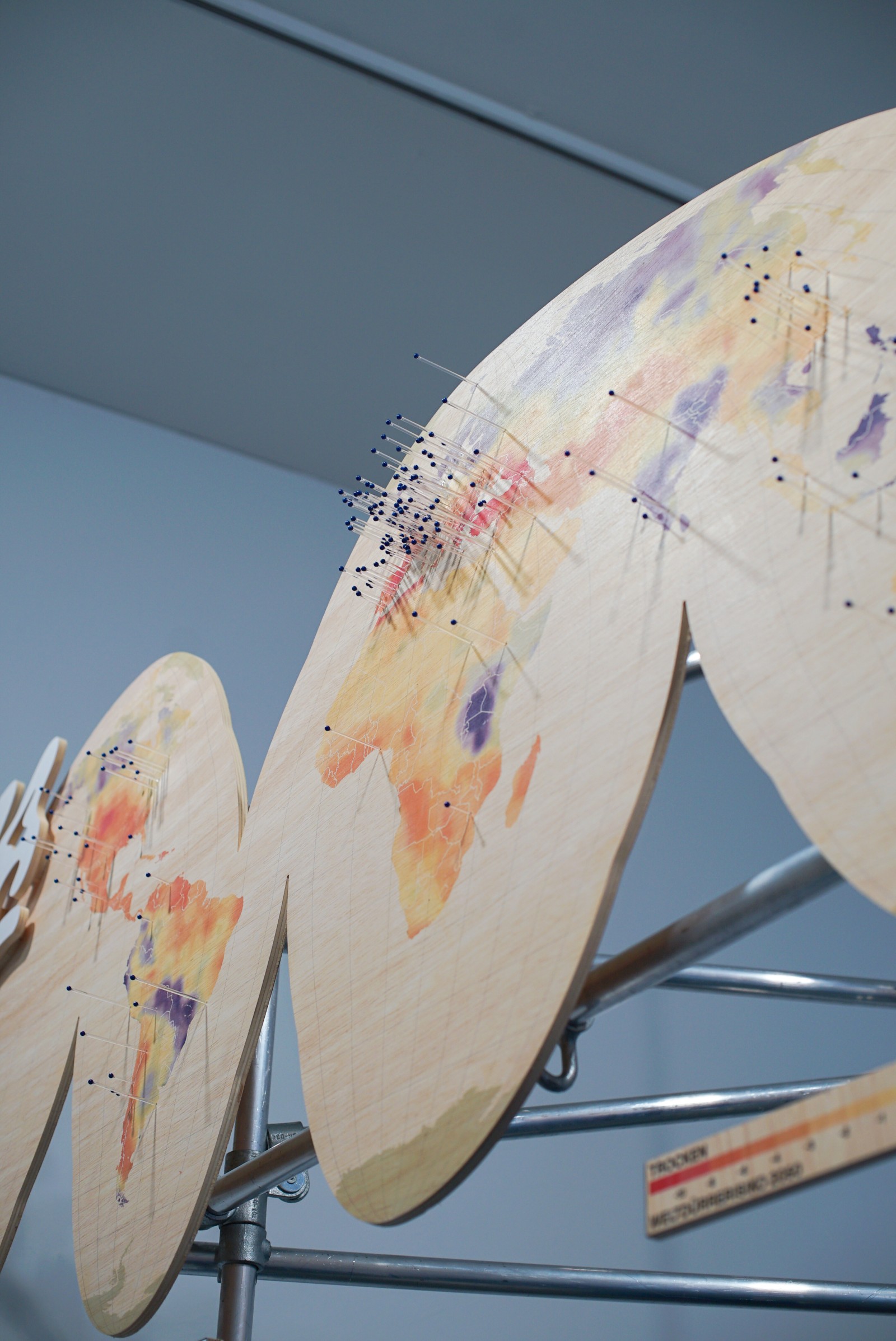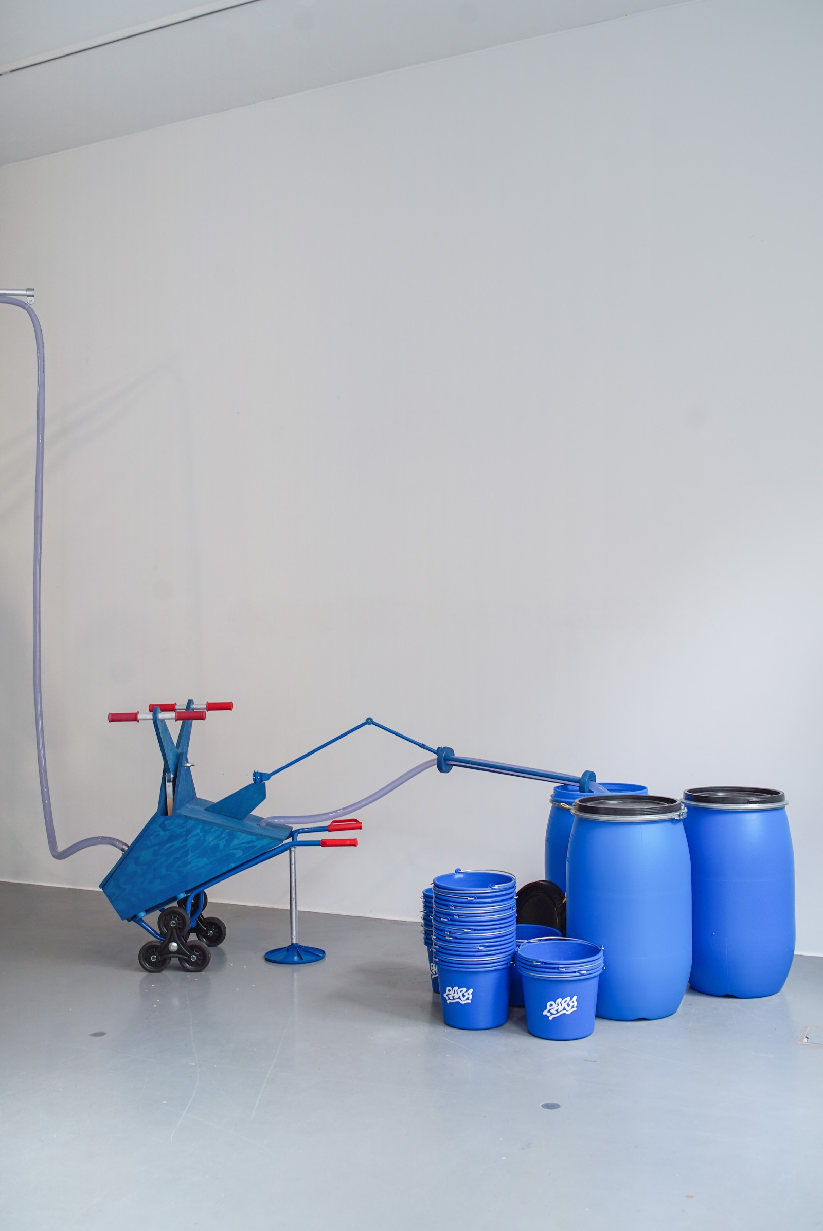 Im Kunstverein Friedrichshafen wird das Wasser aus Zürich gemeinsam mit den Besucher*innen der Ausstellung dem Bodensee zugeführt, um den Pegel wieder steigen zu lassen. Außerdem zeigt die Ausstellung die Dokumentation der Kampagne. Auf der Weltkarte sind die Wasserrationen zu sehen, die auf sich auf dem Weg zu ihrer Destination befinden. Manche sind nur wenige Stunden unterwegs, andere werden erst in 50+ Jahren eintreffen.