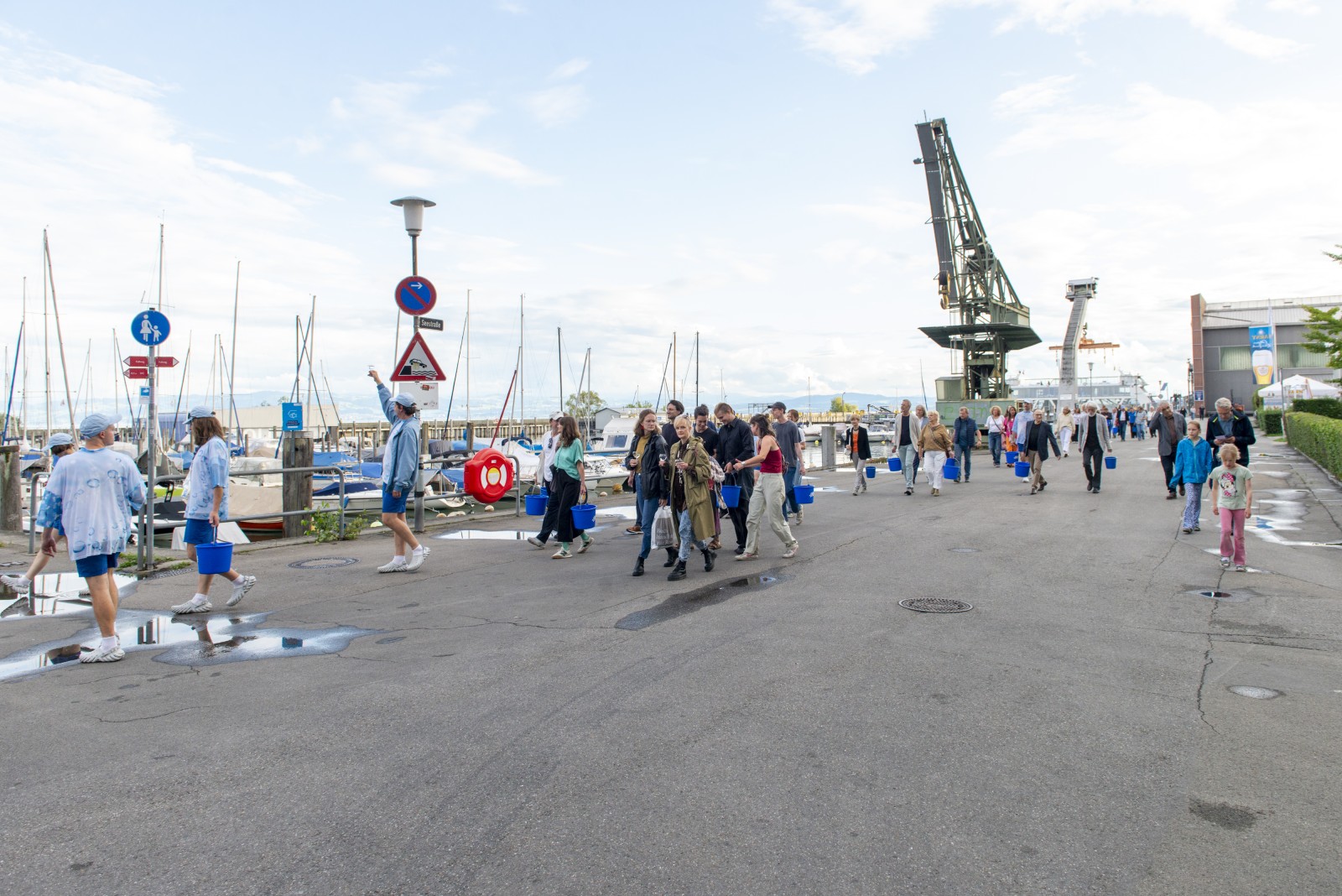 Von Zürich aus reist die Umverteilungsanlage an den Bodensee. Nur 100km entfernt, herrscht am Bodensee Rekordniedrigwasser. Die Entnahme von Wasser aus den Zuflüssen des Sees wird gar mit einer Strafe von 10.000€ geahndet. Wir pumpen unseren Transporter voll mit dem kostbaren Zürcher Wasser und schmuggeln es in Fässern über die Grenze nach Deutschland.