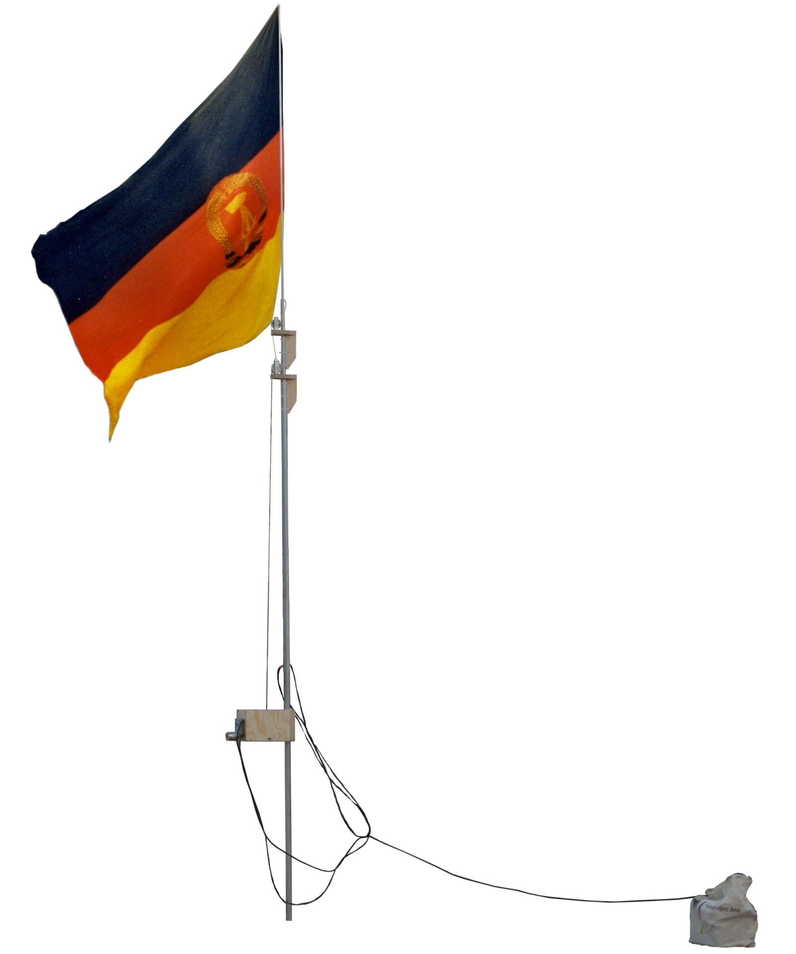 For the daily flag salute, a German flag with the socialist emblem is raised fully automatically and with graceful slowness. It flies in the wind for a minute before returning to half-mast.
