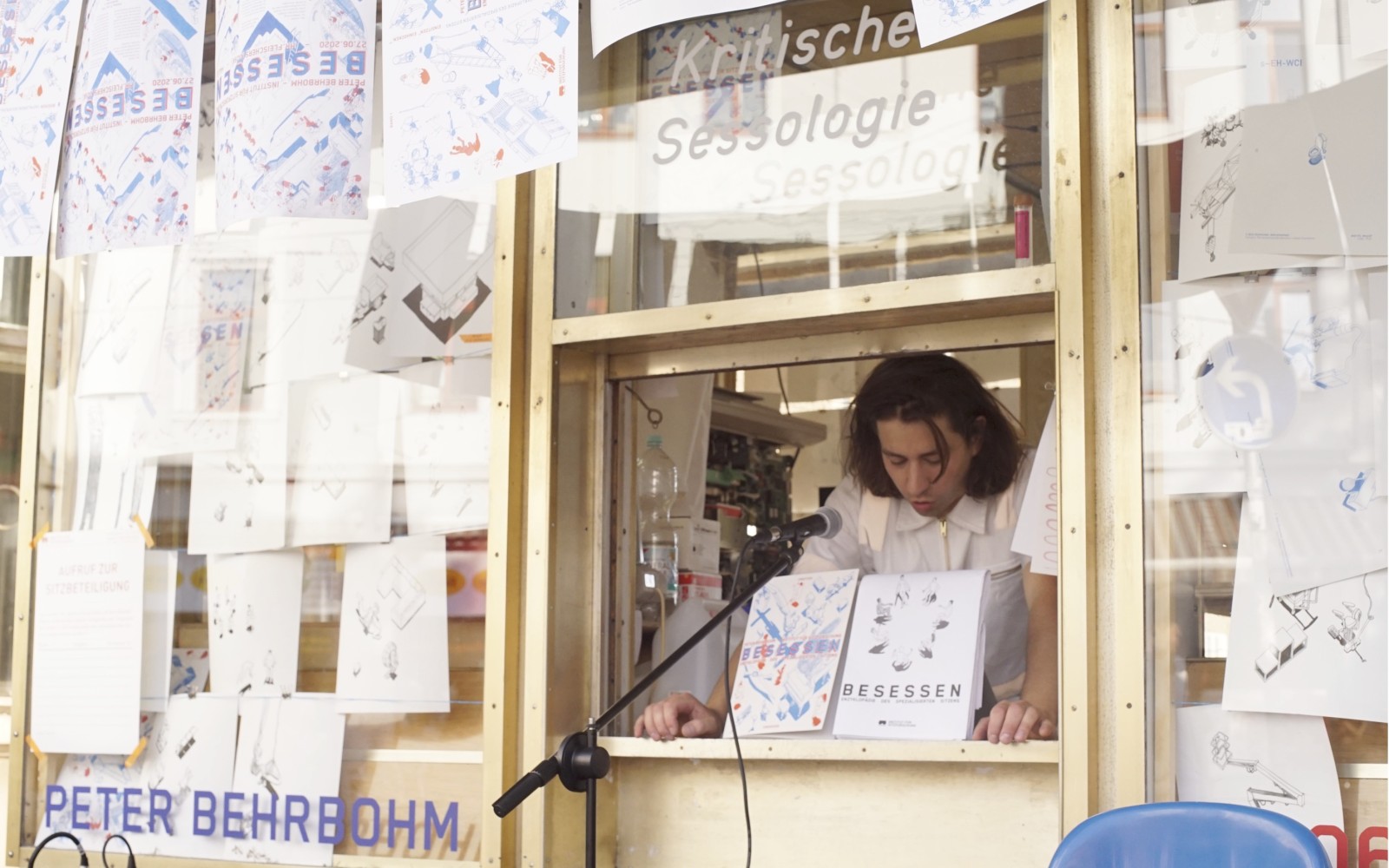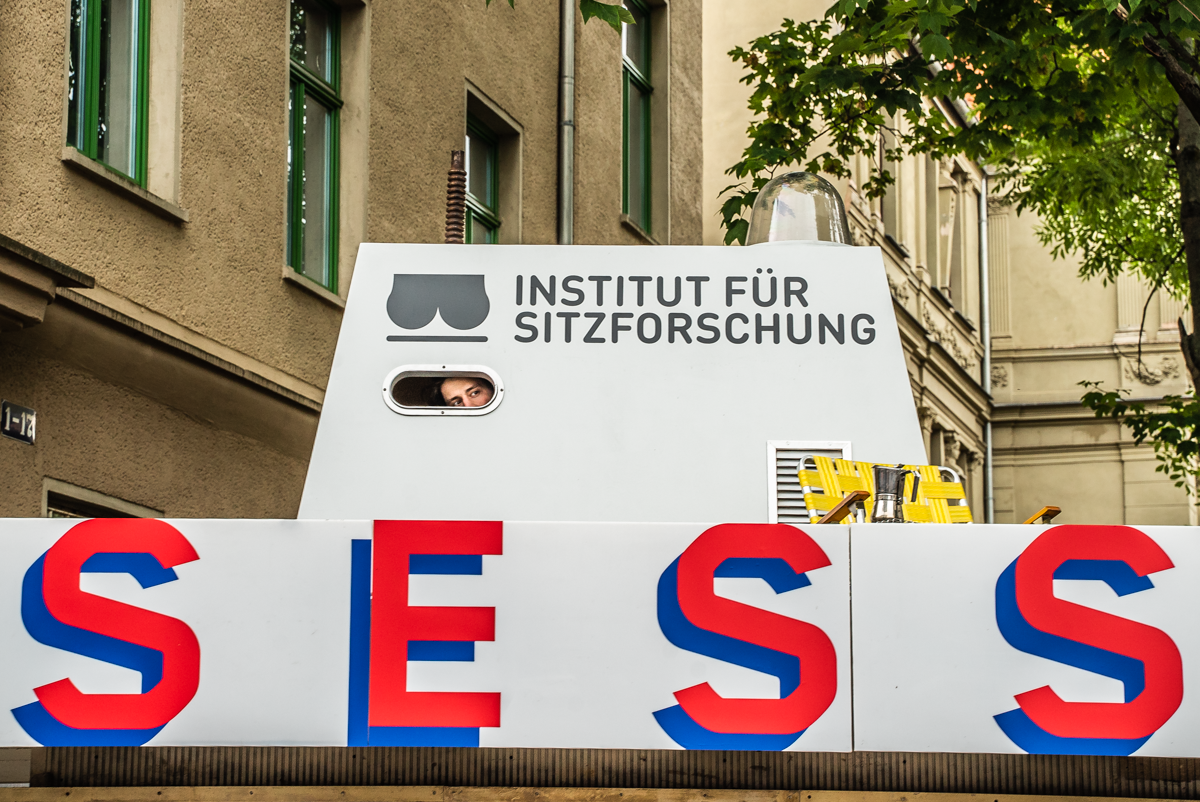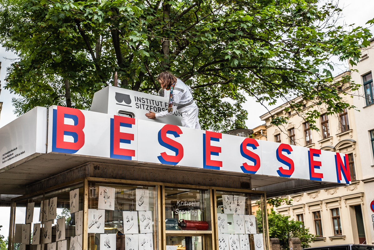 Under examination is a society that is besessen (German for being sitted on as well as obsessed) and rotates day after day between working aparatus and leisure gadgets - hecticly playing musical chairs between seated machines that either generate an income, need to be rented or do both at the same time. With this focus the institute is tracing the increasing dissolution of borders between wage labour and leisure activities from the perspective of sitting.