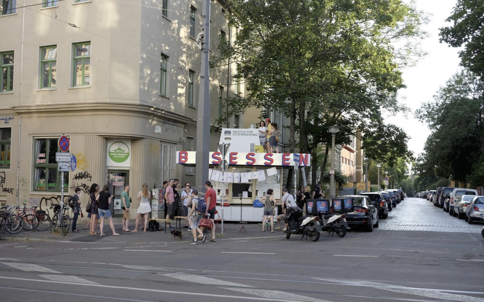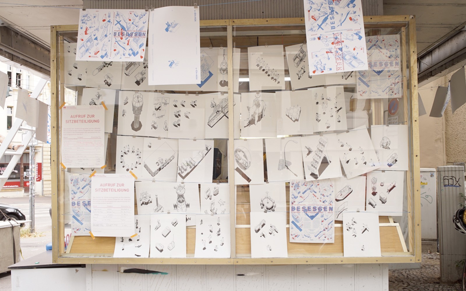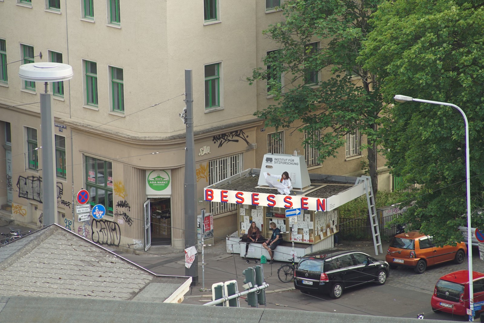 Under examination is a society that is besessen (German for being sitted on as well as obsessed) and rotates day after day between working aparatus and leisure gadgets - hecticly playing musical chairs between seated machines that either generate an income, need to be rented or do both at the same time. With this focus the institute is tracing the increasing dissolution of borders between wage labour and leisure activities from the perspective of sitting.