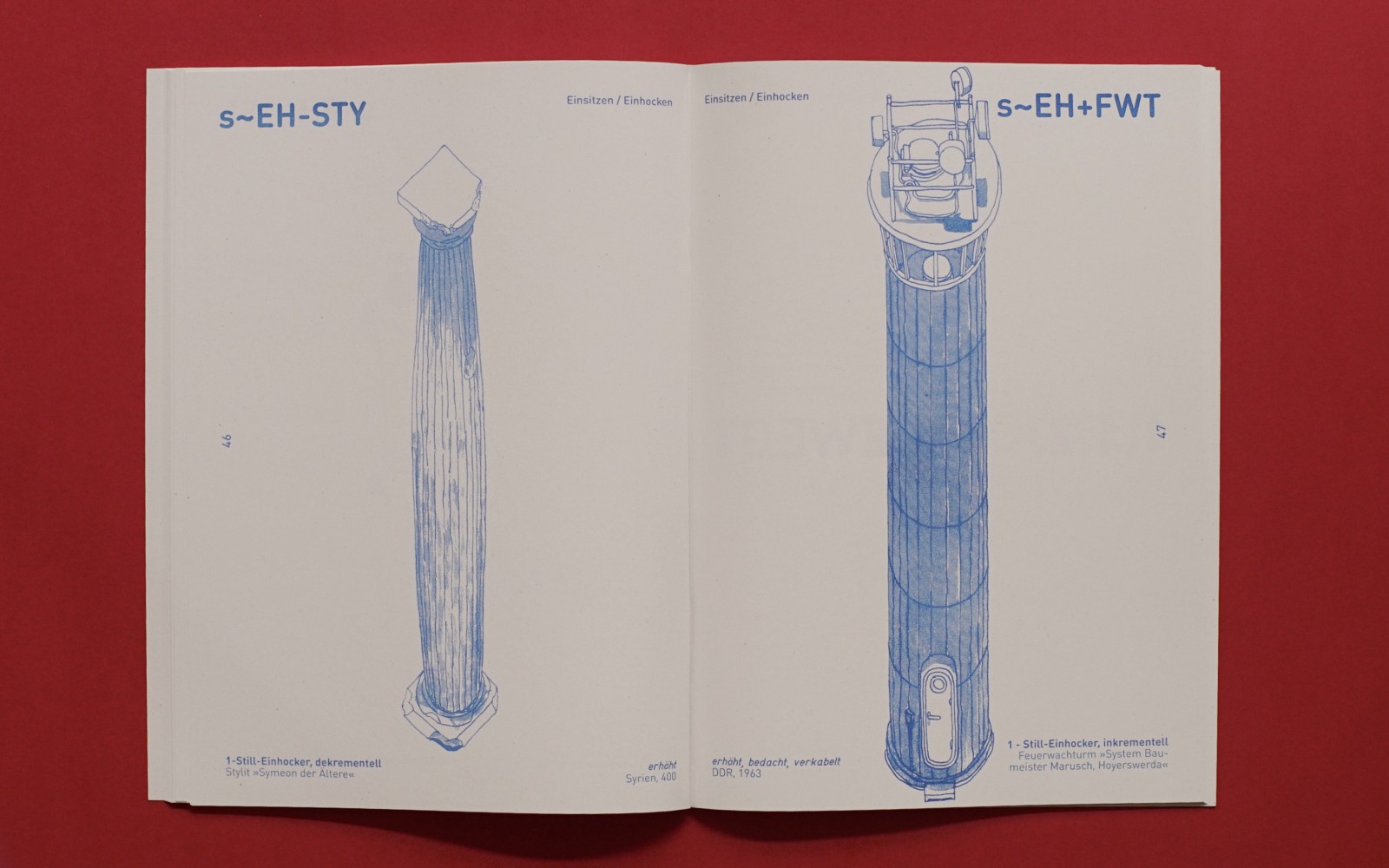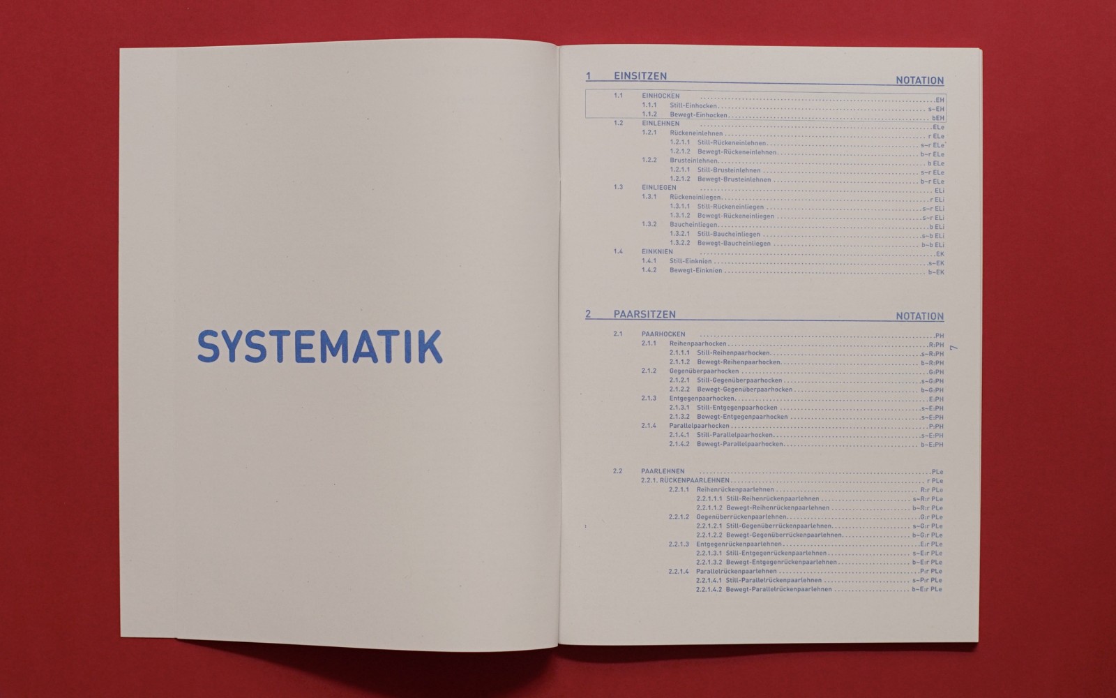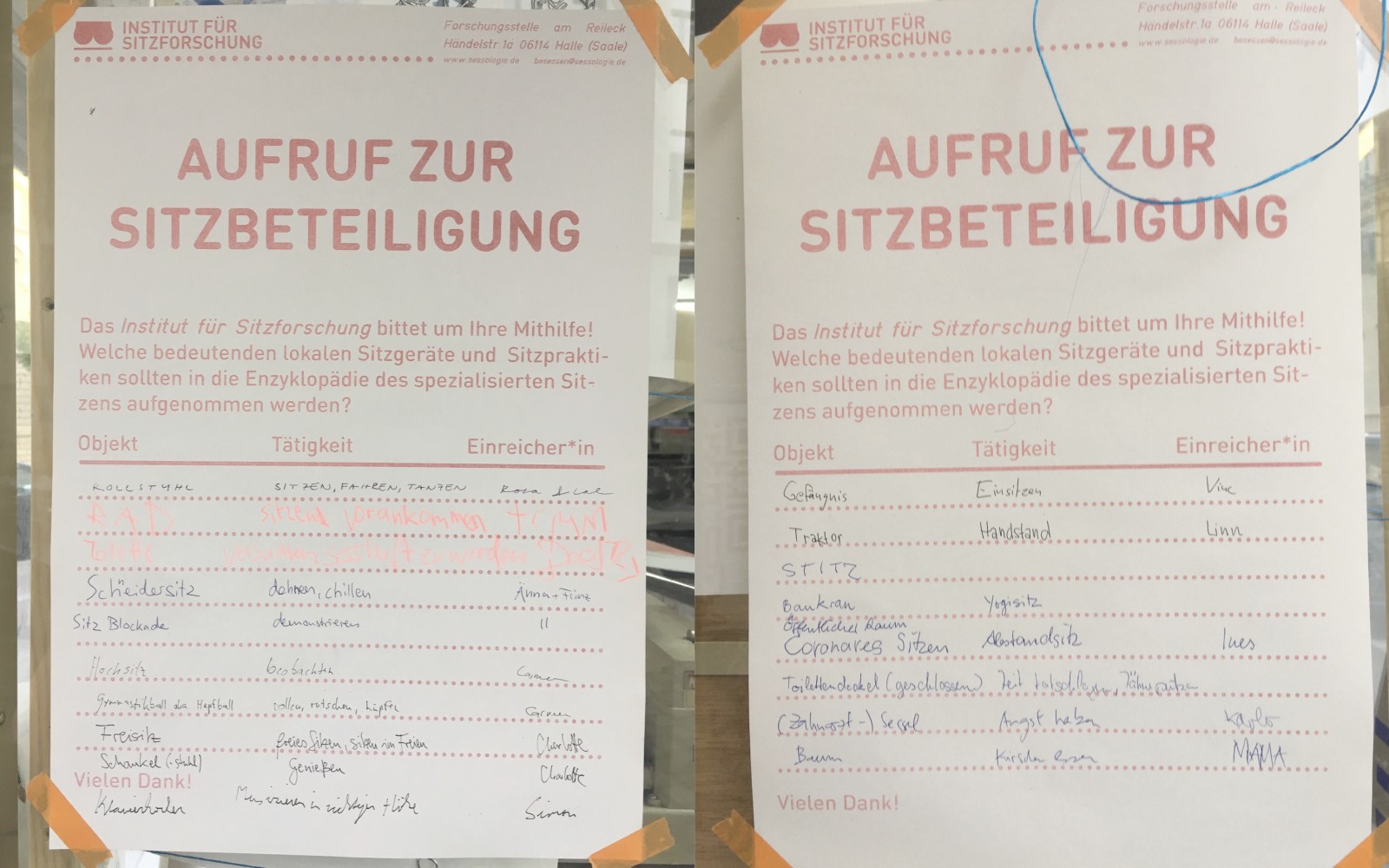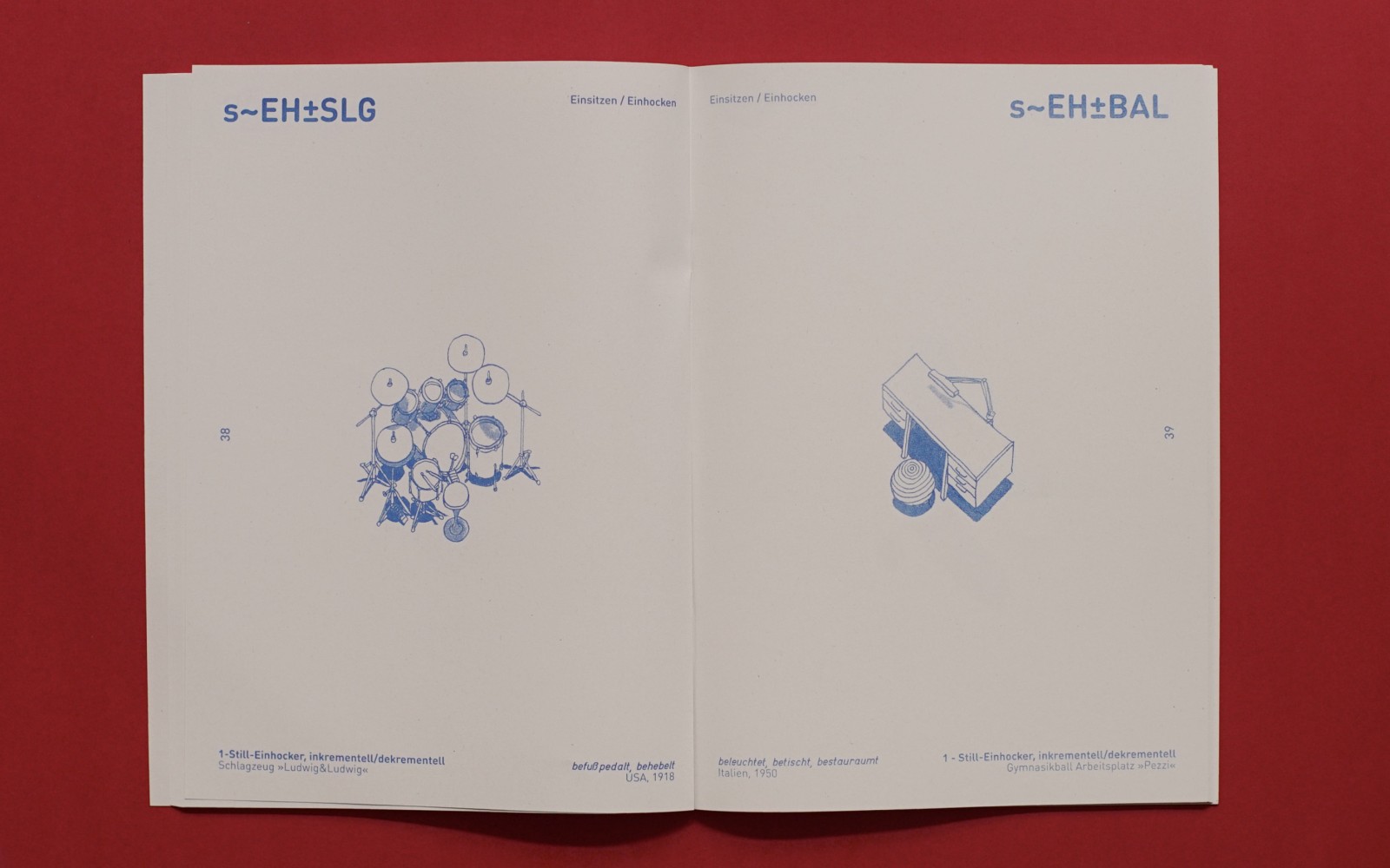 The research Unit at Reileck continues the institute's visual analysis and taxonomic classification of regional sitting practices while publishing the »Encyclopædia on Specialised Sitting«. The following editions are available at the institutes website: