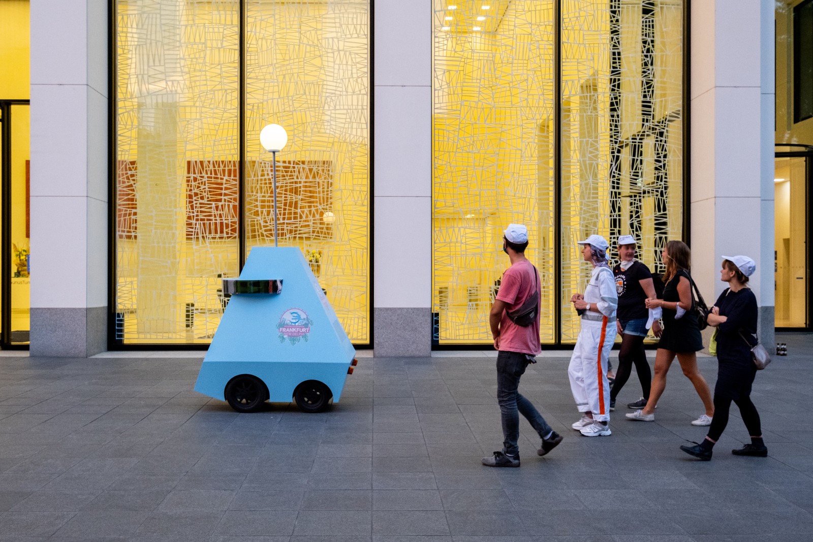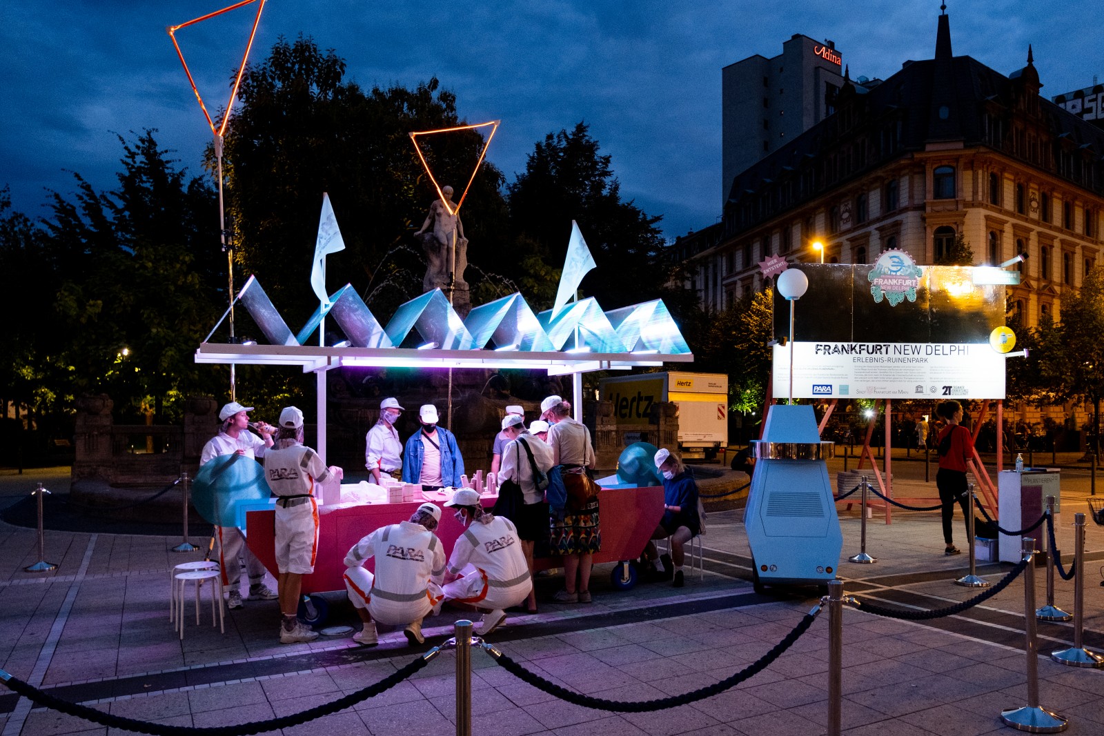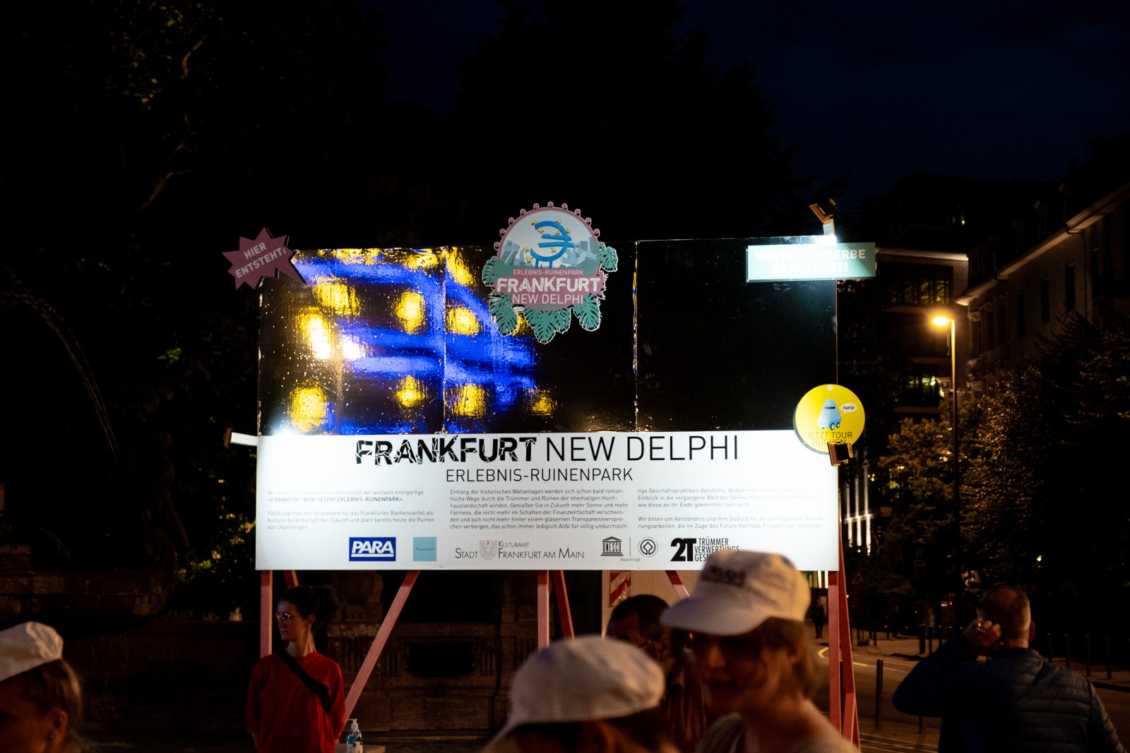 Come along and shape the future of the Frankfurt financial centre, decide on the future location of the rubble and ruins and let the FAFÜ250+ guide robot already guide you through the remains of the global financial system! With your help, the world's first and only ‘FRANKFURT NEW DELPHI HERITAGE THEME PARK’ will soon be created here.