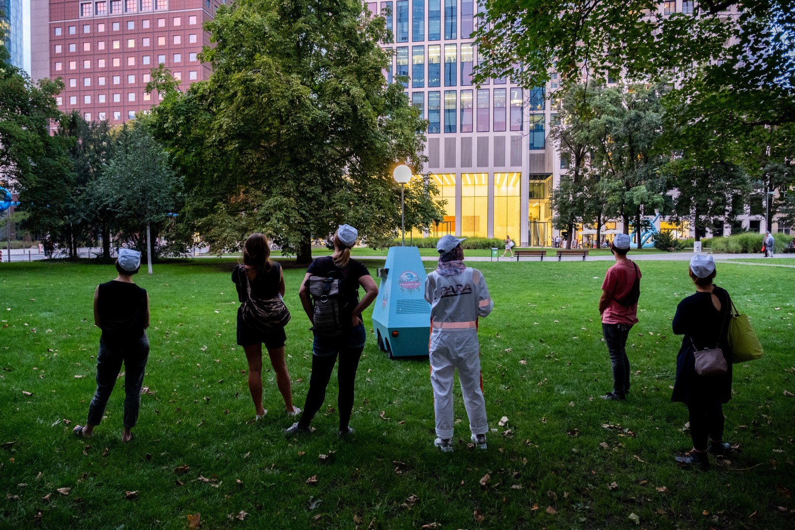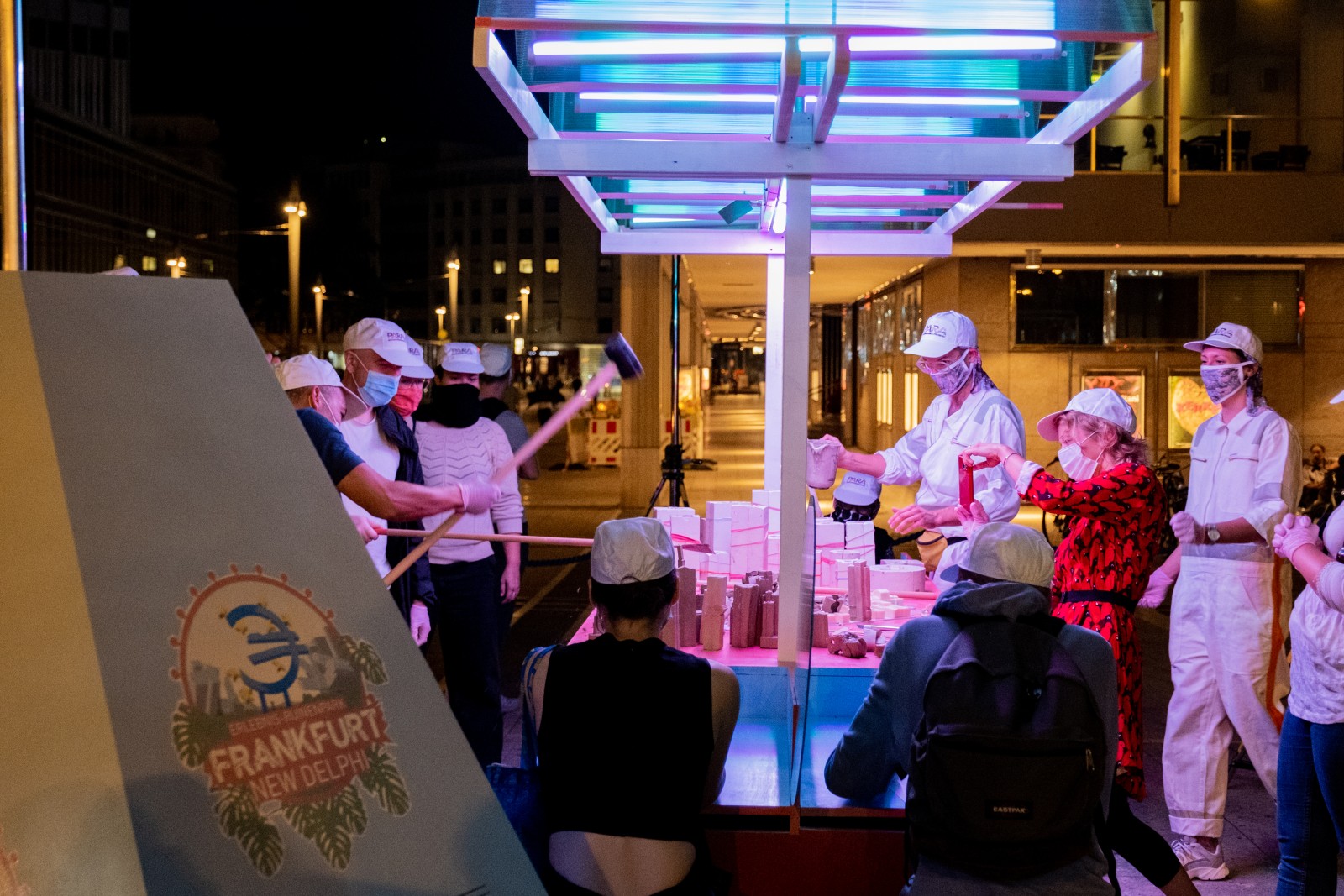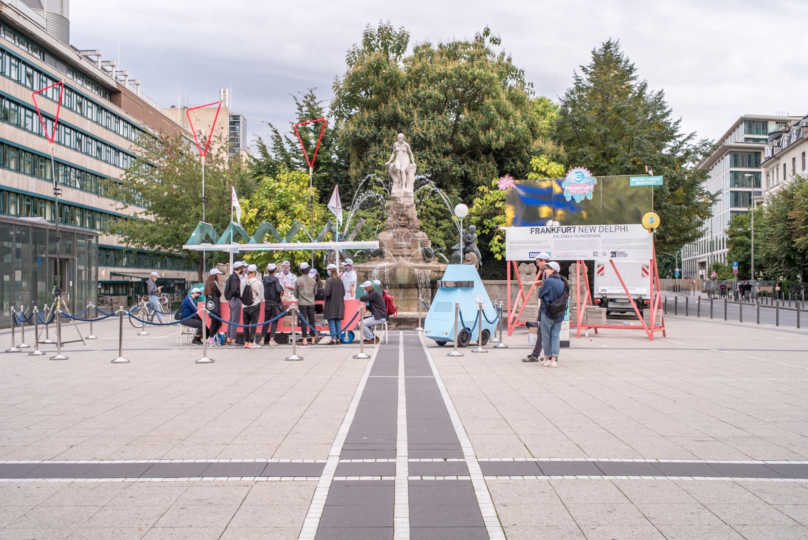 Come along and shape the future of the Frankfurt financial centre, decide on the future location of the rubble and ruins and let the FAFÜ250+ guide robot already guide you through the remains of the global financial system! With your help, the world's first and only ‘FRANKFURT NEW DELPHI HERITAGE THEME PARK’ will soon be created here.