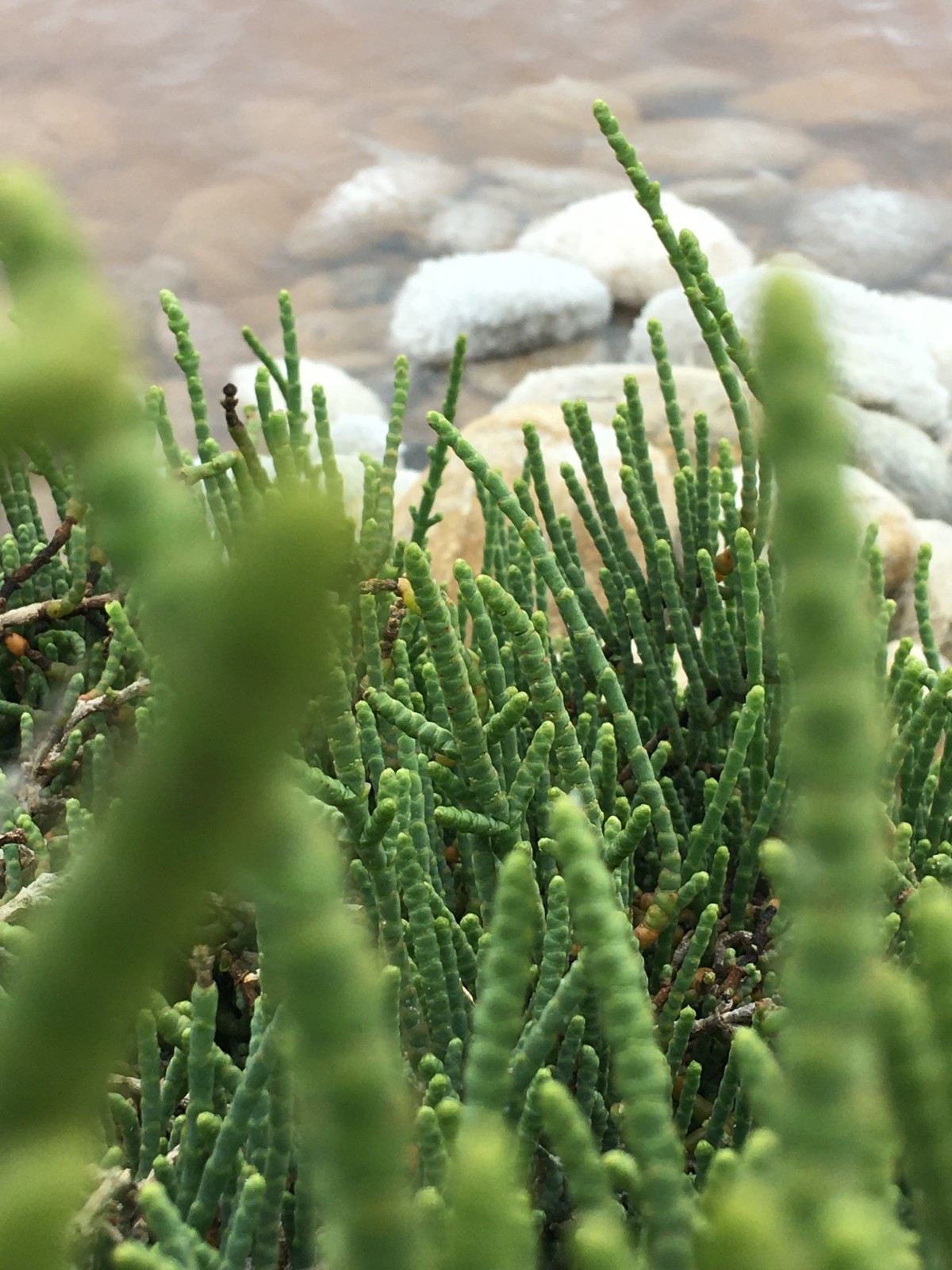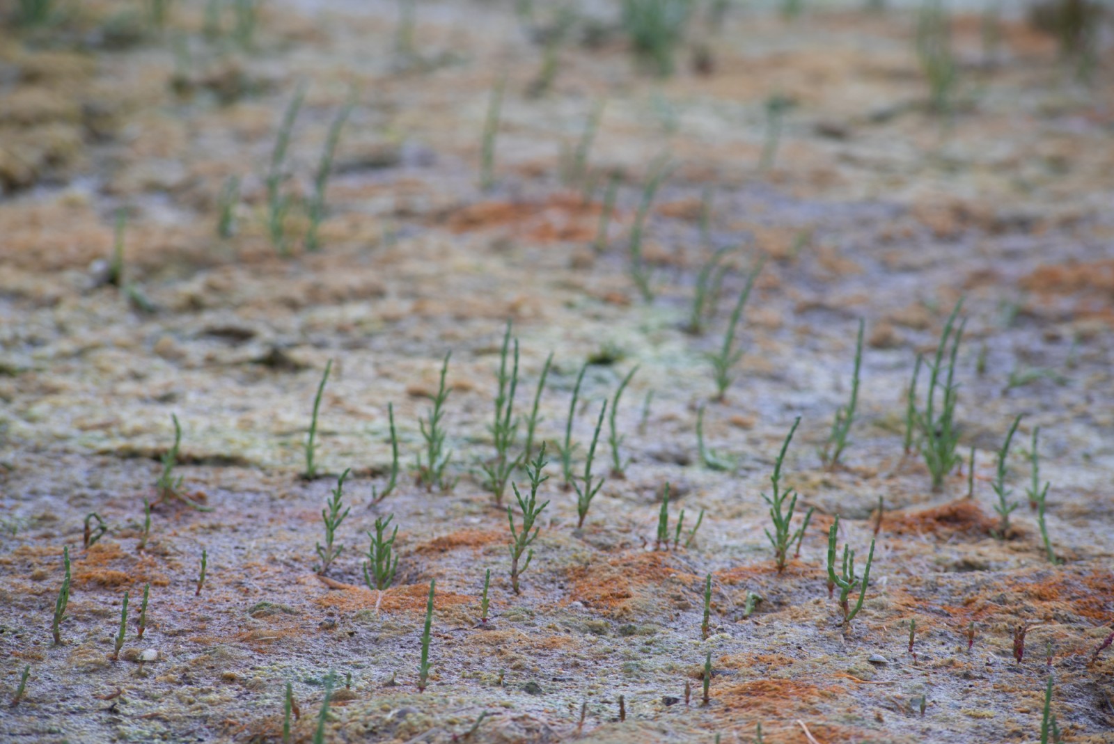 Are these images taken on Earth, or are they actually shot on another planet? The landscape appears dystopian. Bright red puddles surrounded by mud and rocks. The liquid is saturated with some salt, crystallizing everywhere white and razor-sharp. Nothing seems able to survive in these hostile conditions... except for a small plant hiding between the rocks called ‘Salicornia’.