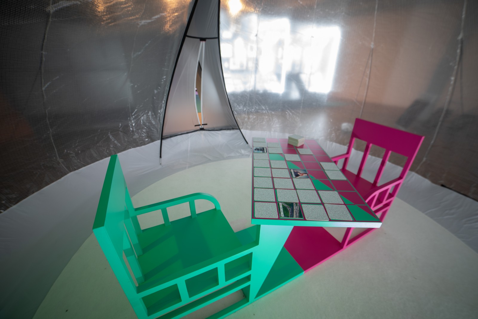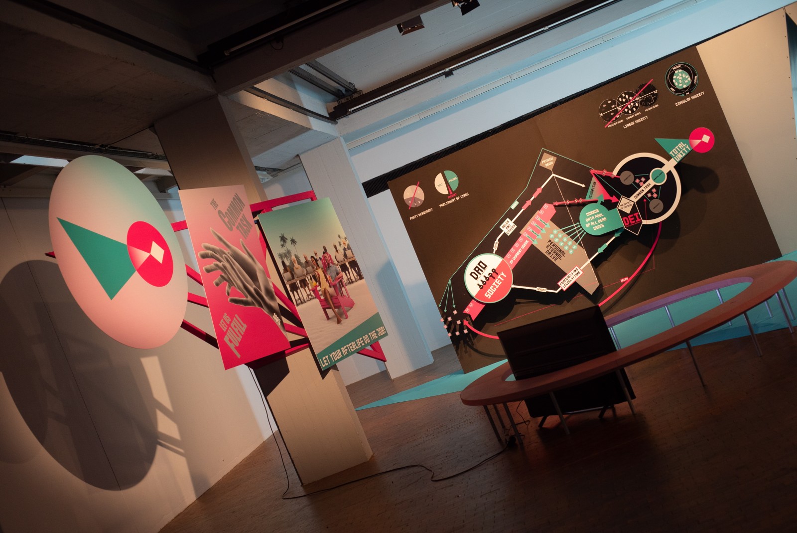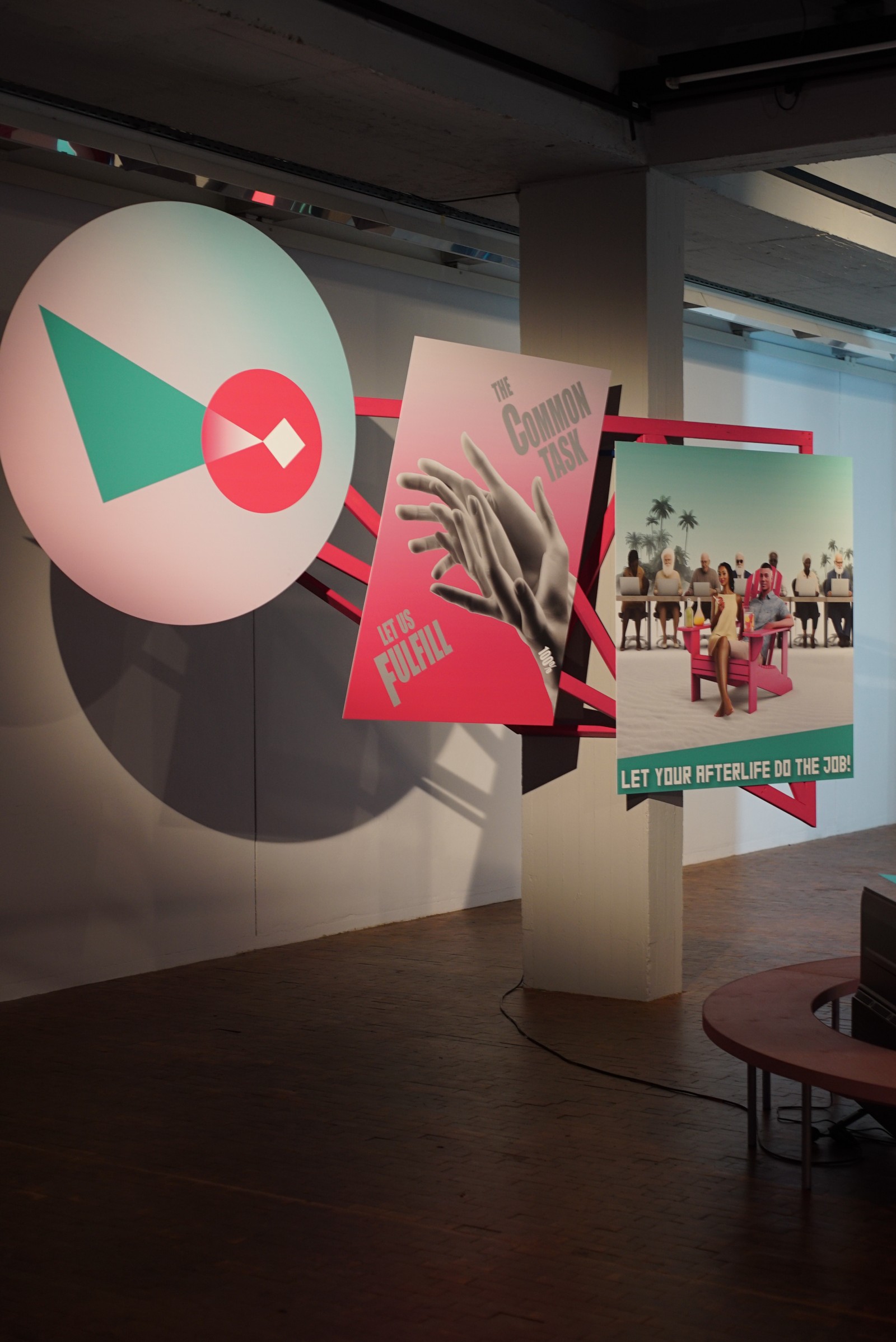 Anton Steenbock and Peter Behrbohm fuse elements of startup fair stands, space capsules and shrines into a pavilion selling a sophisticated business model that aims to fulfil the “Divine Common Task” - the peaceful unification of the past, present and future.