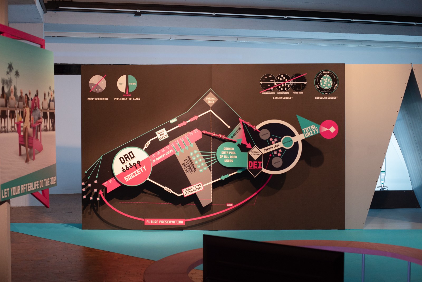 When physical death occurs, your entire memory will be transferred to Total Cloud where it will be processed by our open source "soul" algorithm and resurrected into a collective afterlife. Our ultimate goal is The Common Task. We believe that organizing the vast private datascapes into a collective memory is the key to solving all urgent problems of the future in time. Therefore, we aim for digital immortality of all users. Ensuring a total unification into a divine collective body, the DAO DEI, which acts as a democratic parliament of time forms. We believe that by collecting and reorganizing individual memories, we can build a fair, just, and foresighted society. A truly socialist collective, uniting as an eternal workforce in the afterlife. By inheriting your data legacy to the common good, you are laying the foundation for eternal wisdom. Join us at Total Earth to forecast our shared future and to fight for a world without oblivion. Let us fight for a reality, not dictated by those currently in power but learning from every single fail of our common ancestors to share knowledge and power with all users to come.